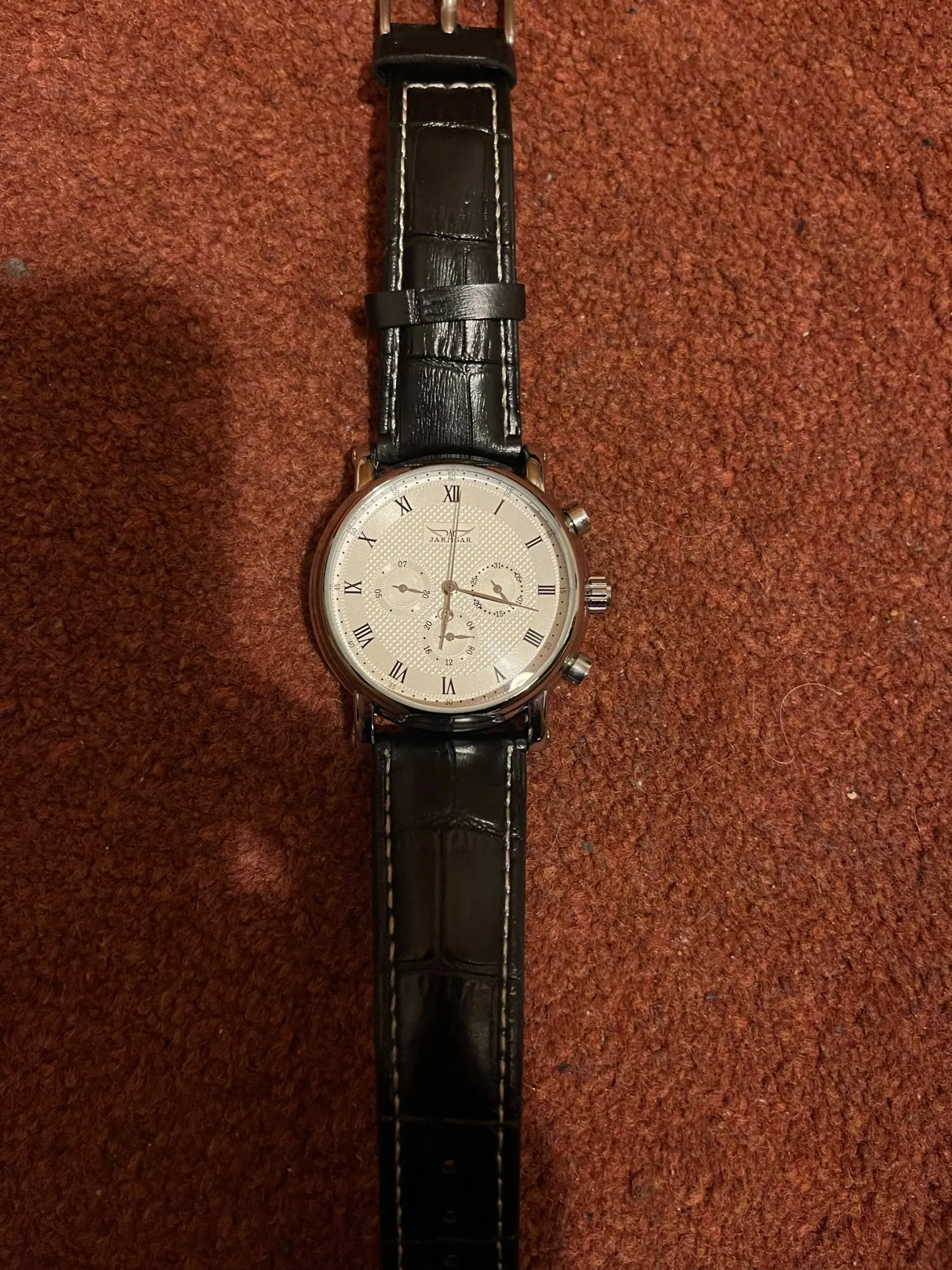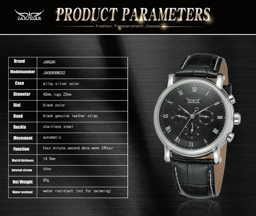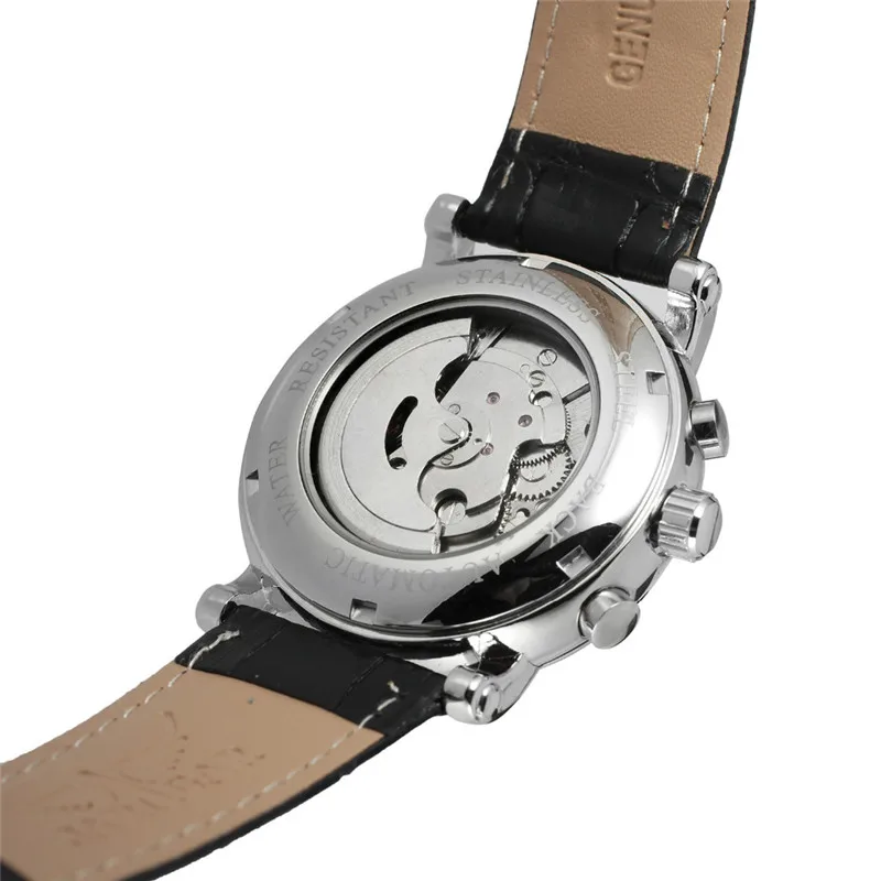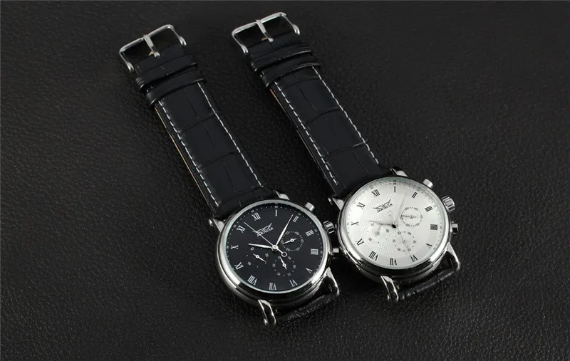 Мужские многофункциональные наручные часы JARAGAR, с 6-контактным циферблатом и круглой механикой, модные повседневные наручные часы с кожаным ремешком