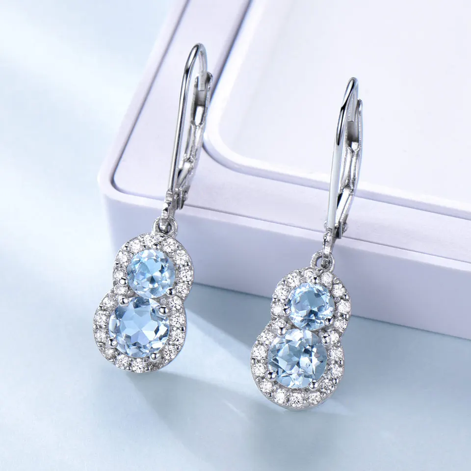 UMCHO Роскошные висячие серьги с голубым топазом из стерлингового с...