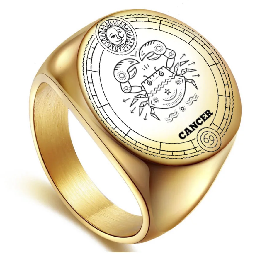 Кольцо на палец с гравировкой 22 мм, 12 созвездий, кольцо из нержавеющей стали 316L