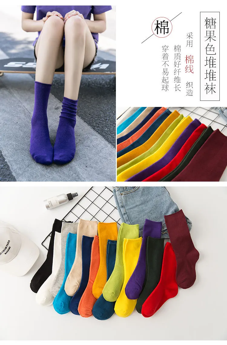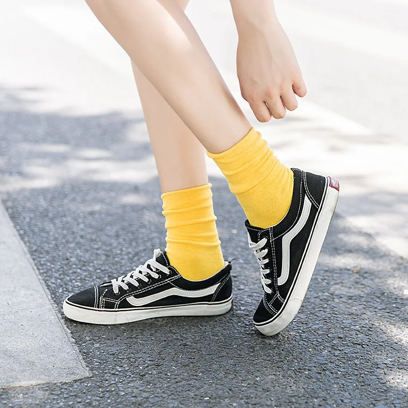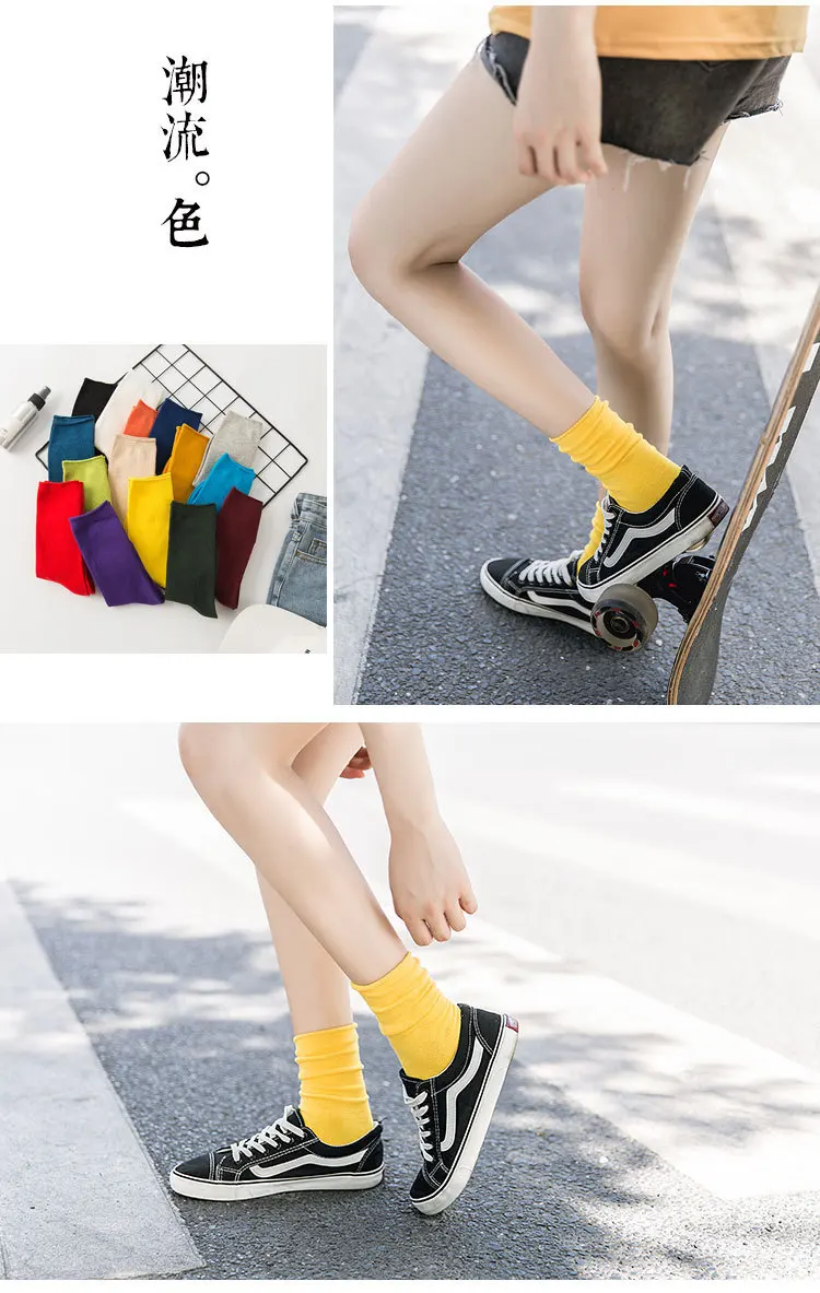 Носки Женские однотонные до щиколотки PEONFLY, хлопковые студенческие, ярких цветов, в стиле Харадзюку, повседневные Смешные, желтые, зеленые, красные, на осень