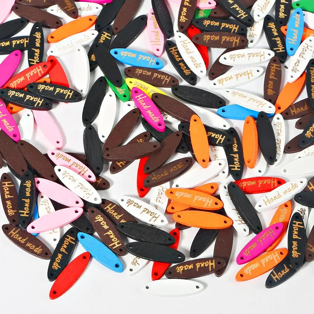50 шт., этикетка ручной работы разноцветных пуговиц для шитья, деревянные тэги, для скрапбукинга, аксессуары для украшения одежды