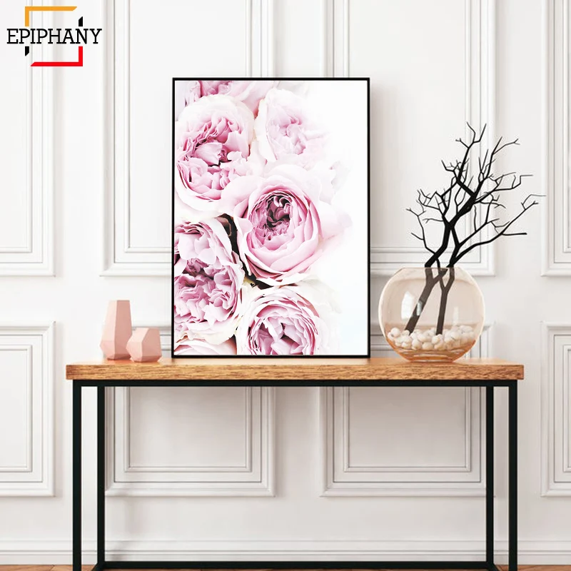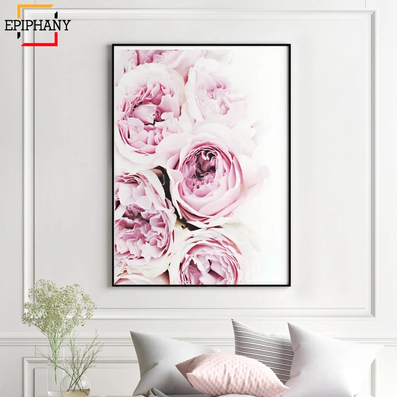 Розовые пионы с цветочным принтом, румяна для румян, пион, Картина на холсте, Современный домашний декор, настенная живопись для спальни, гостиной
