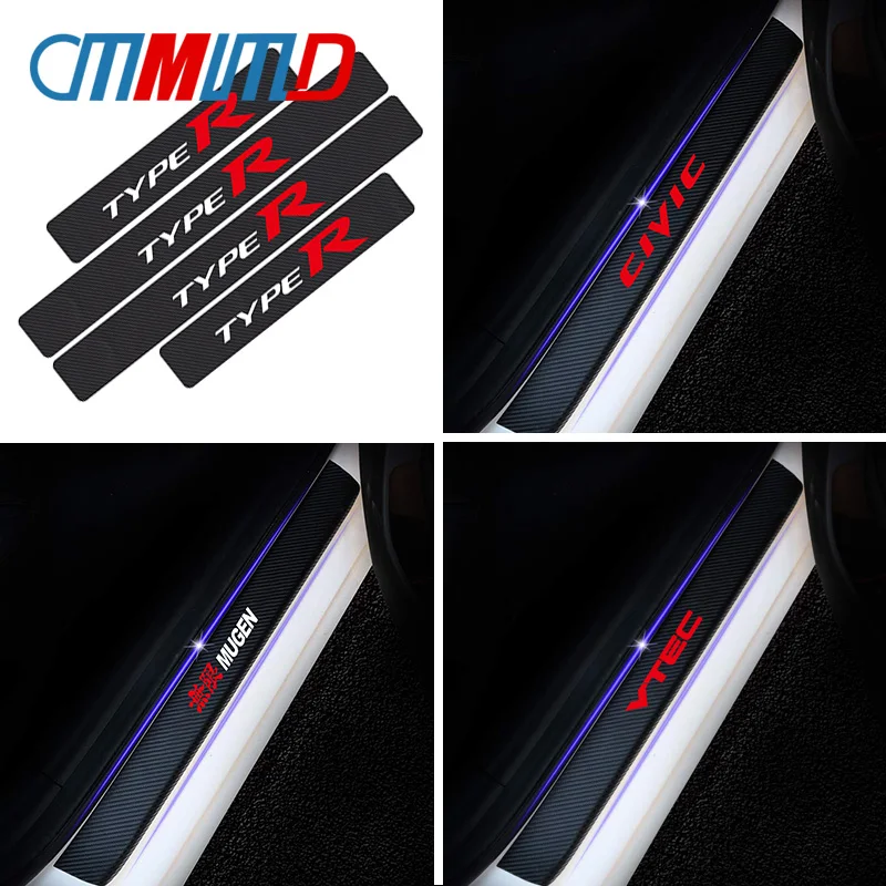 4 шт., защитные наклейки на пороги автомобиля, из углеродного волокна