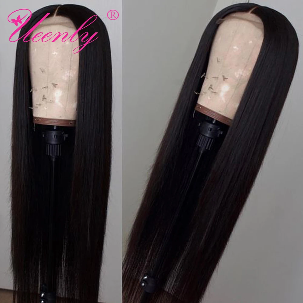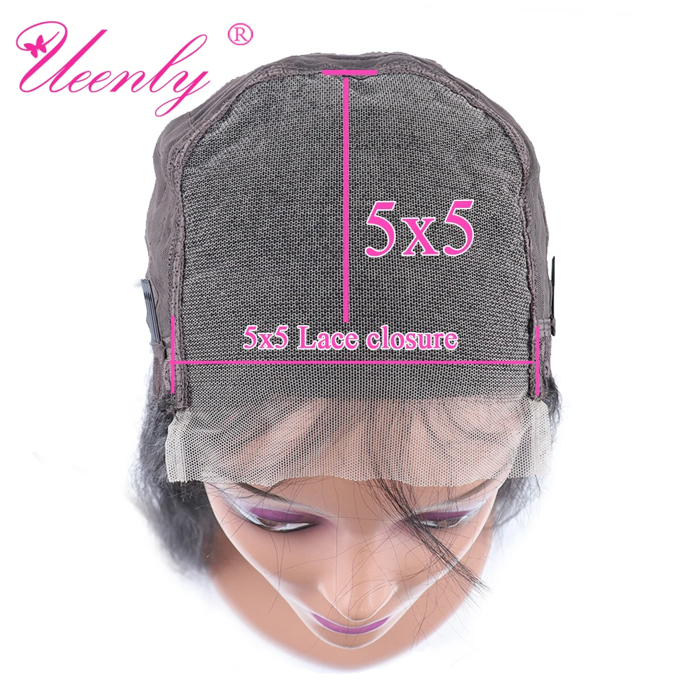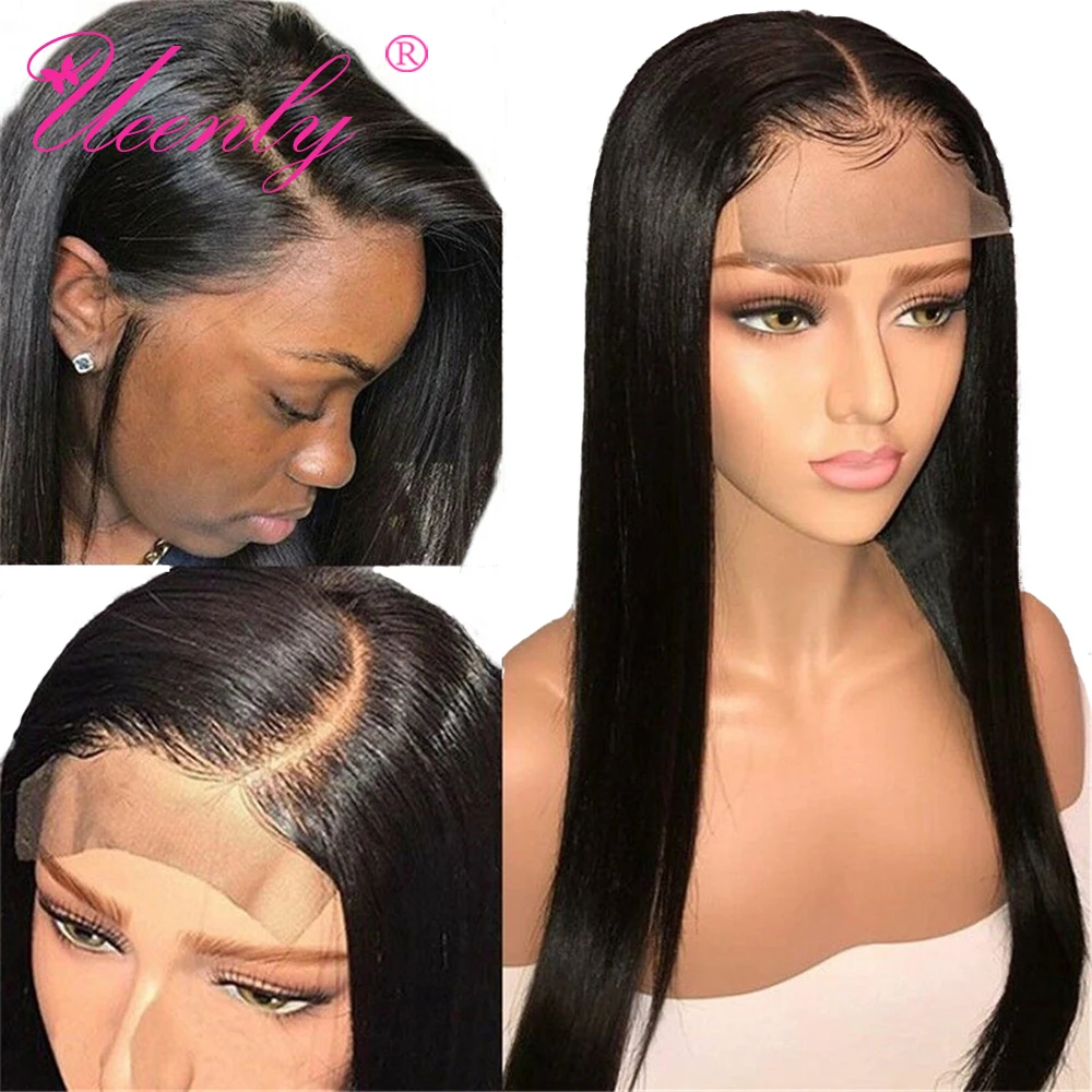 UEENLY 4x4 парик с закрытием, бразильские прямые человеческие волосы с закрытием, предварительно отобранные волосы, Реми волосы, кружевные передние парики