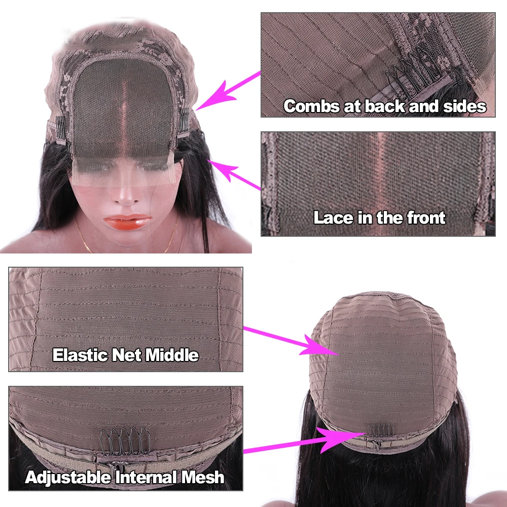 Грубые прямые волосы, кружевные передние человеческие волосы, парик...
