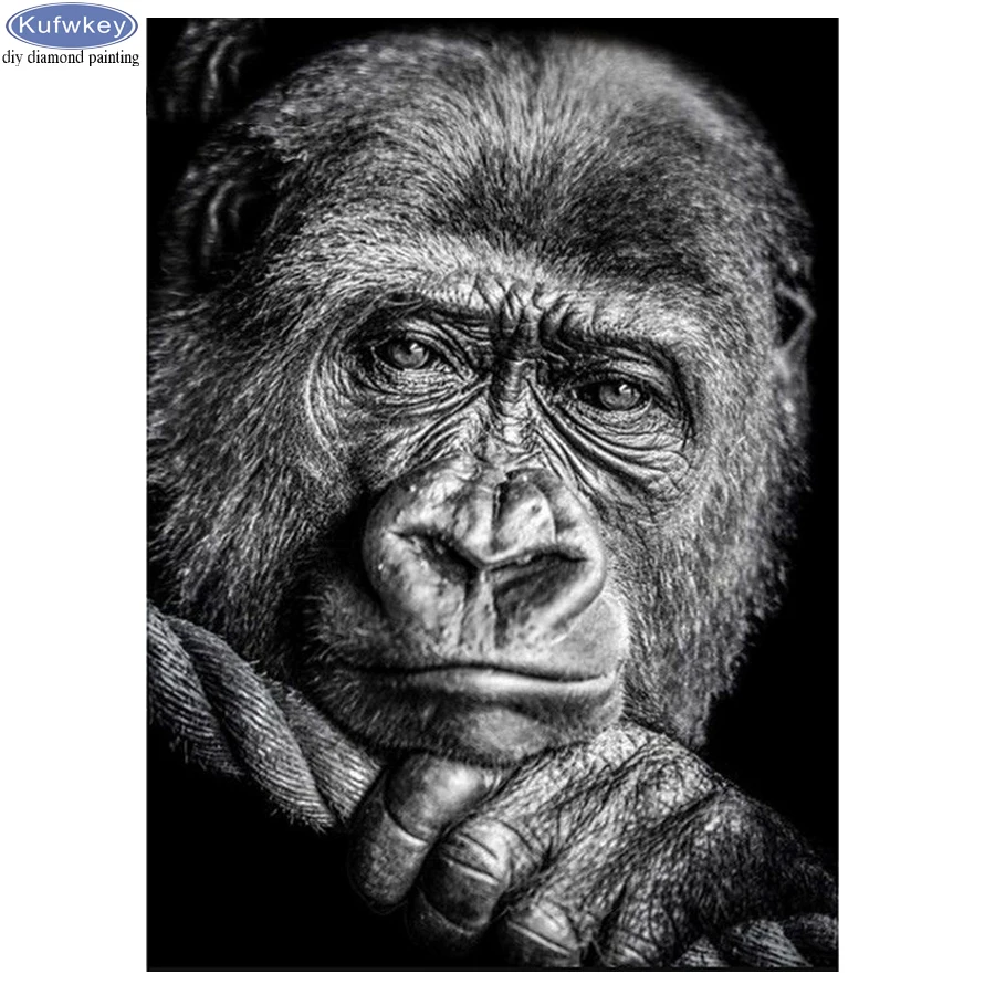 Черно-белая Горилла 5D DIY Алмазная вышивка полностью квадратная/круглая дрель diy алмазная живопись обезьяна мозаика рукоделие домашний декор