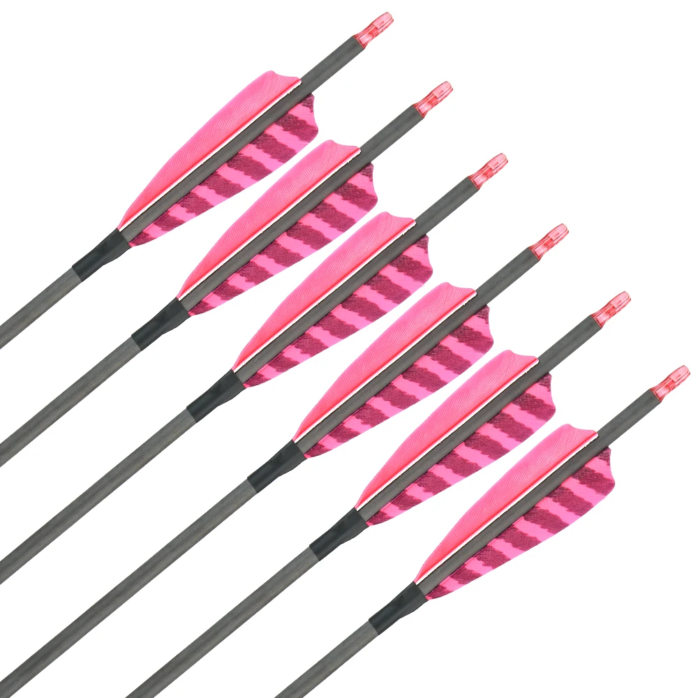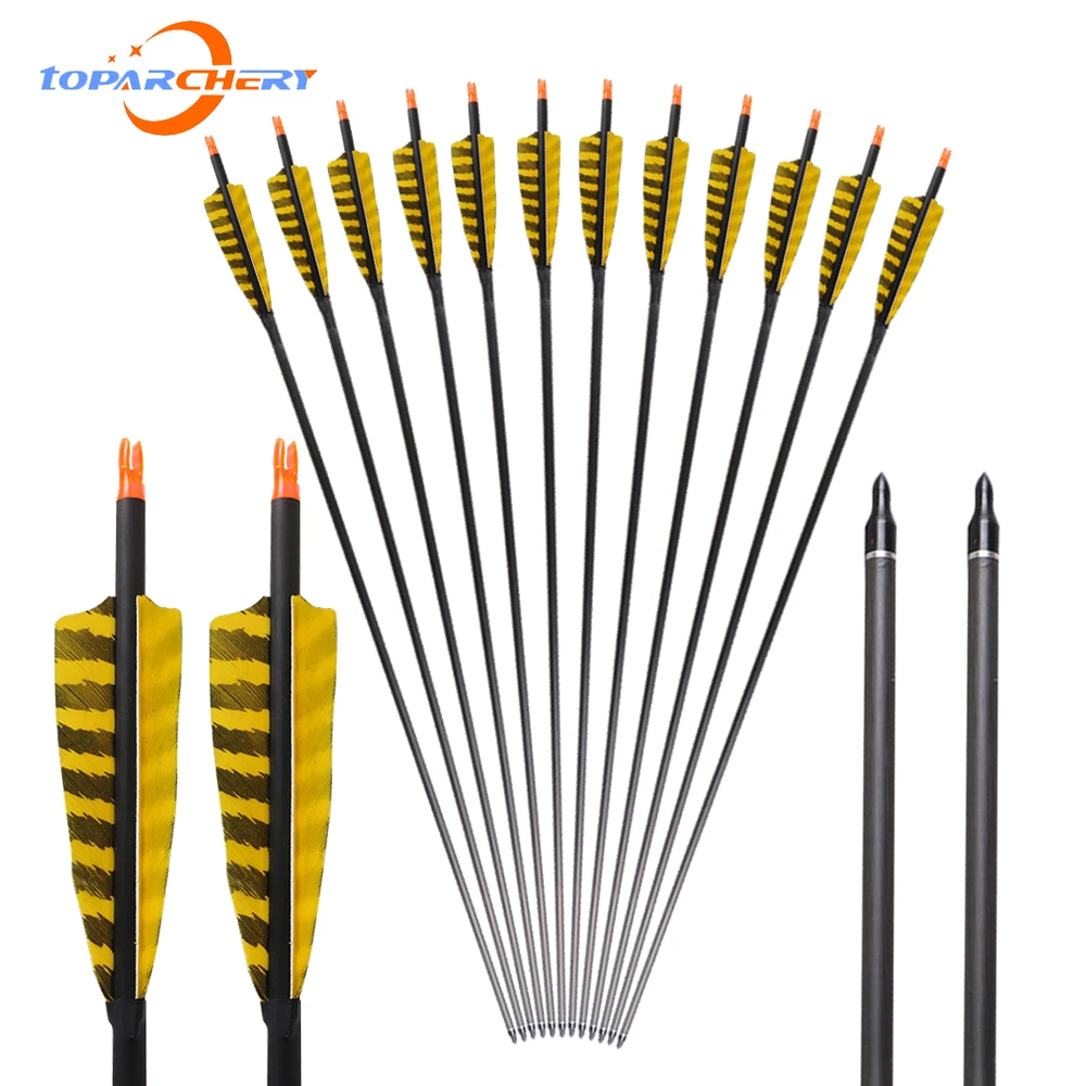 612 шт чистый углерод стрела с натуральным турецким пером 32 дюйма позвоночника 400 ID 6,2 мм регулируемый Nock для Archey съемки охоты