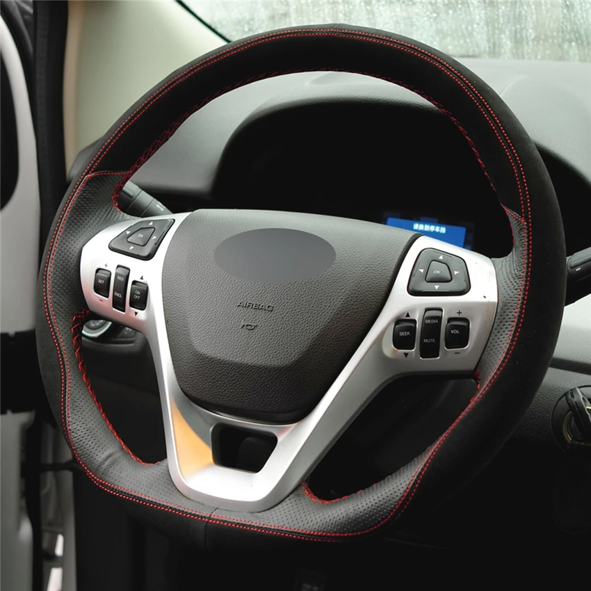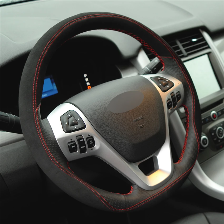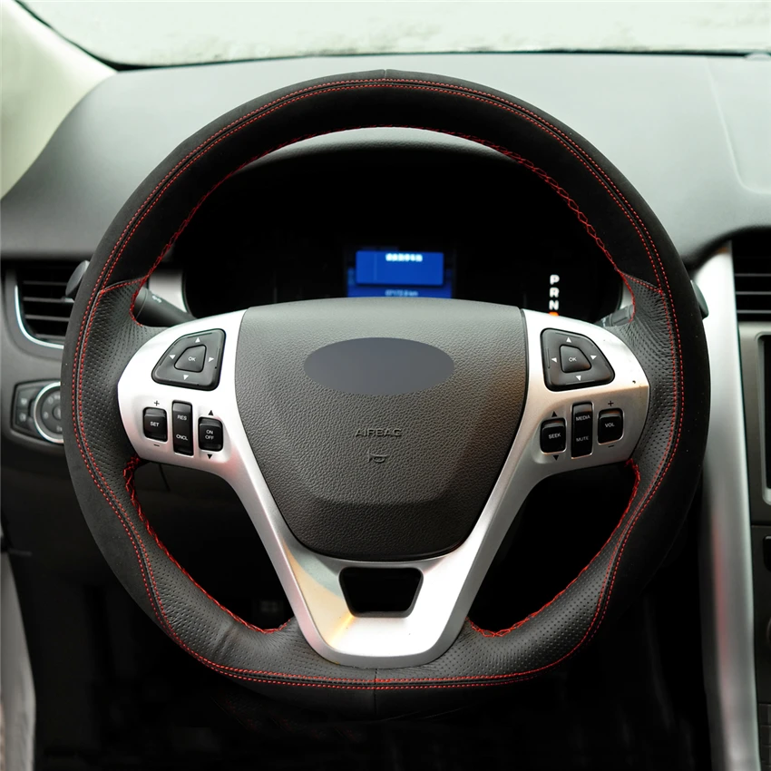 Ручная работа черная замша натуральная кожа чехол рулевого колеса автомобиля для Ford Explorer 2011-2019 Таурус 2013-2019 край 2011-2014