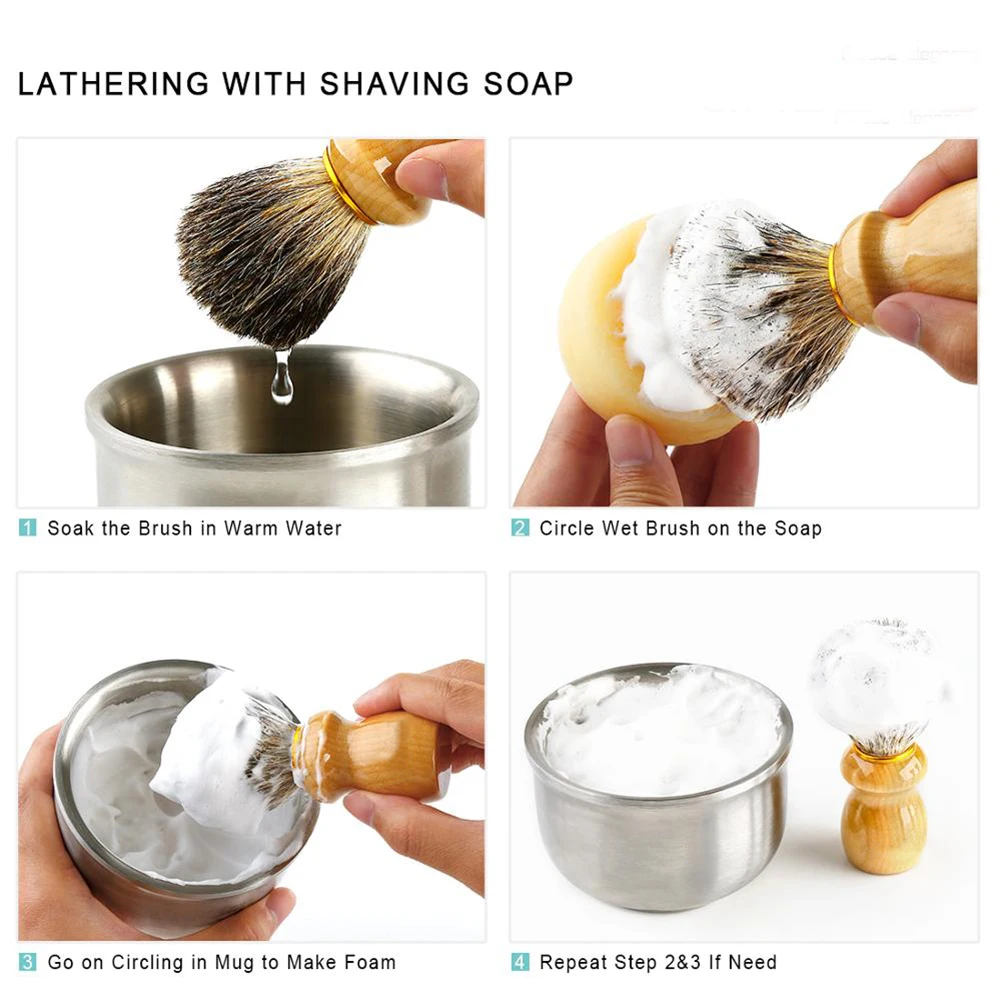 Пена для бритья: Используйте кисточку для бритья, нанесенную вокруг покраски, пену для мыла для бритья/пену для бороды, пена может смягчить волосы и защитить вашу кожу