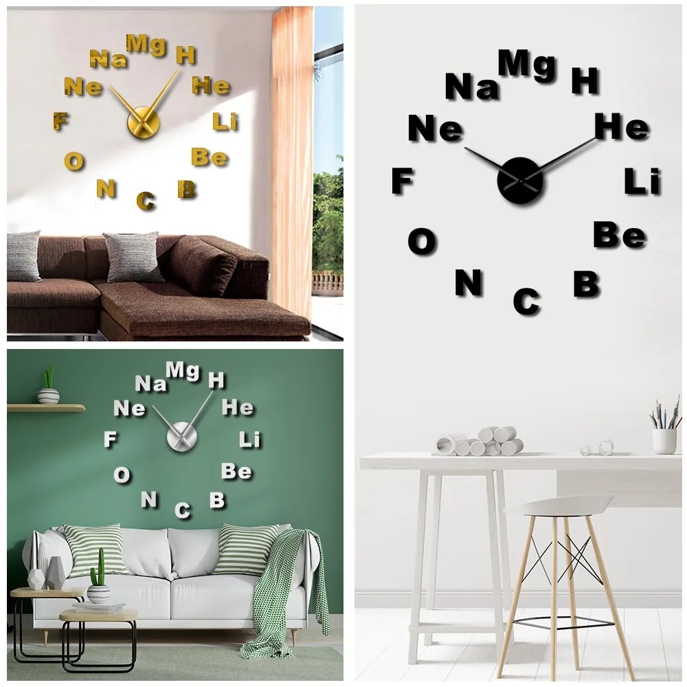 Периодическая таблица элементов, большие 3D настенные часы сделай сам, химическая медицина, наклейки с зеркальными эффектами, настенные часы, зеркальные часы