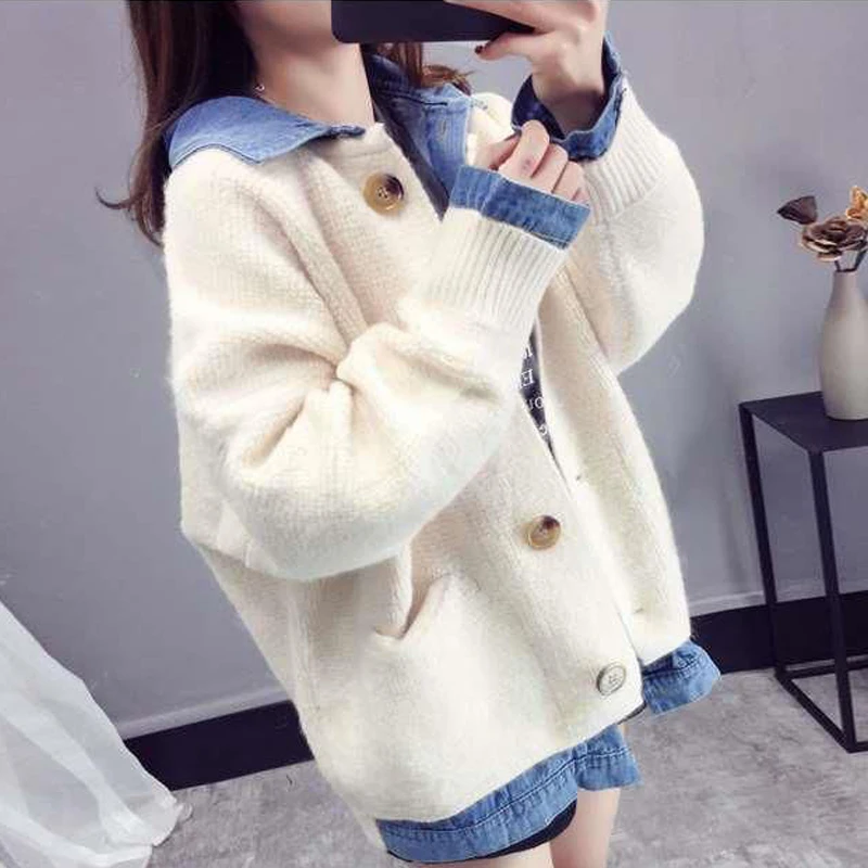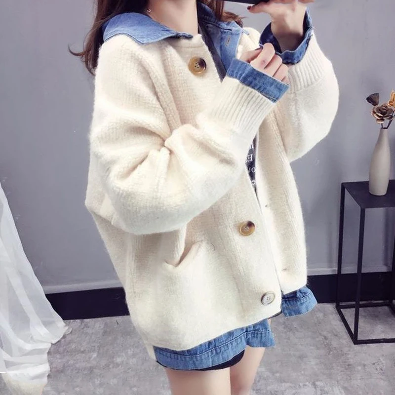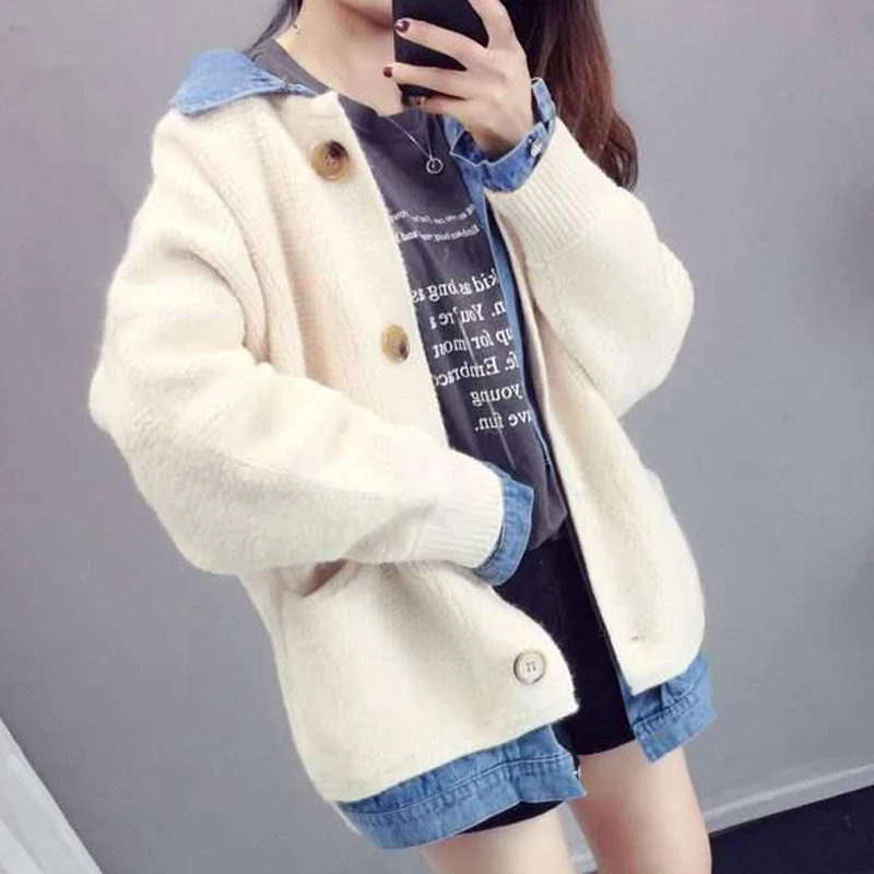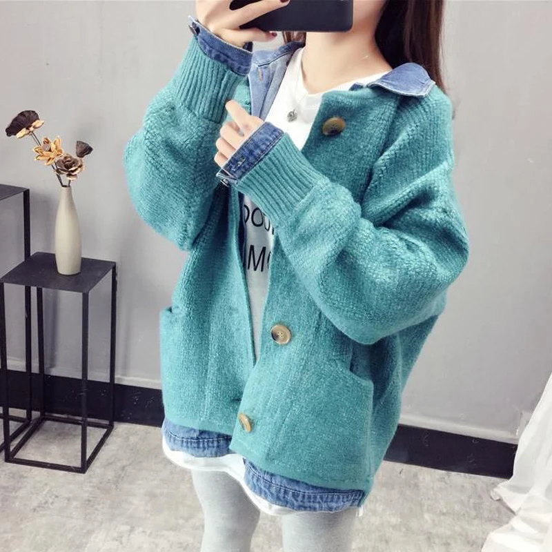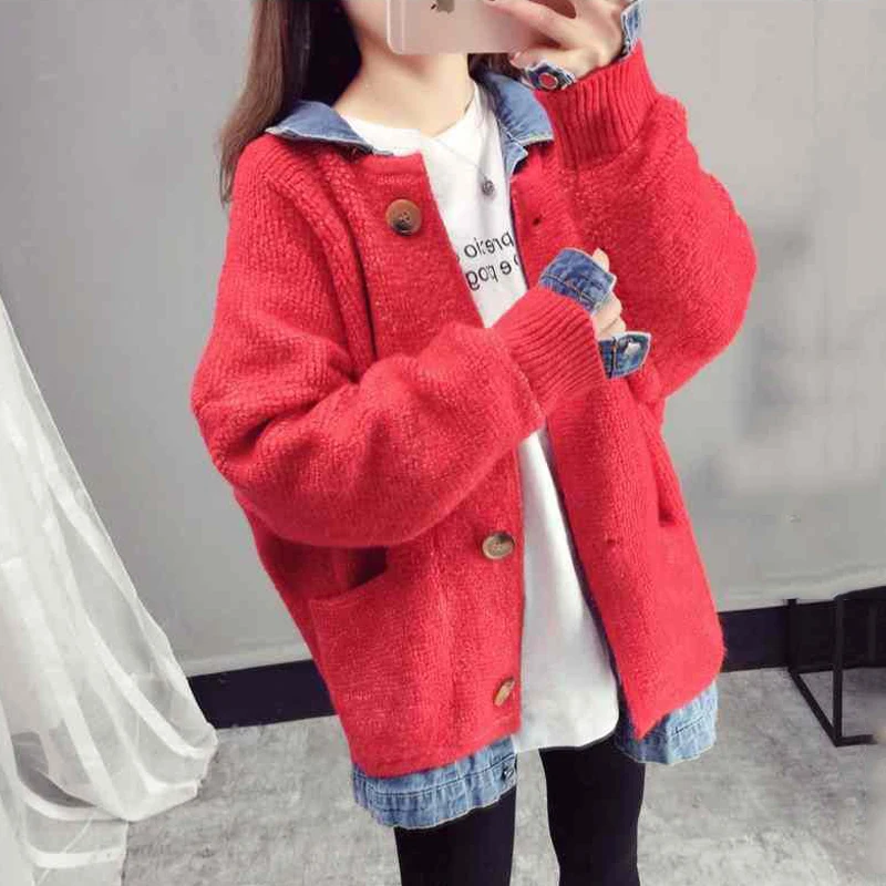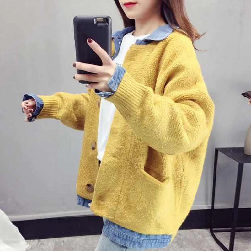 Женский вязаный свитер на пуговицах, Свободный кардиган в Корейском стиле, зимняя верхняя одежда, 2021