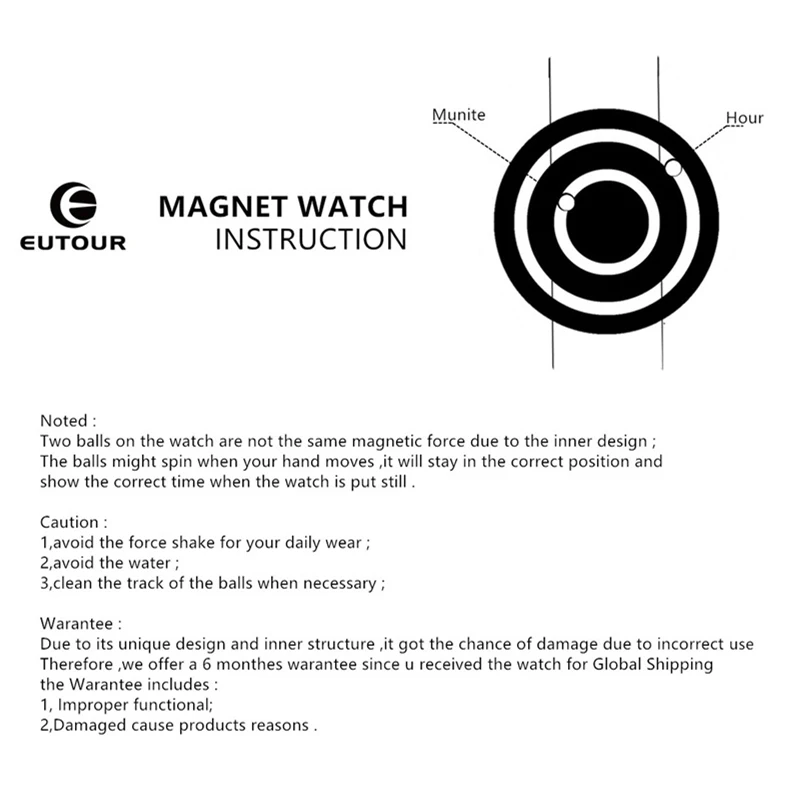 Часы наручные EUTOUR мужские с магнитным шариком, модные кварцевые ...