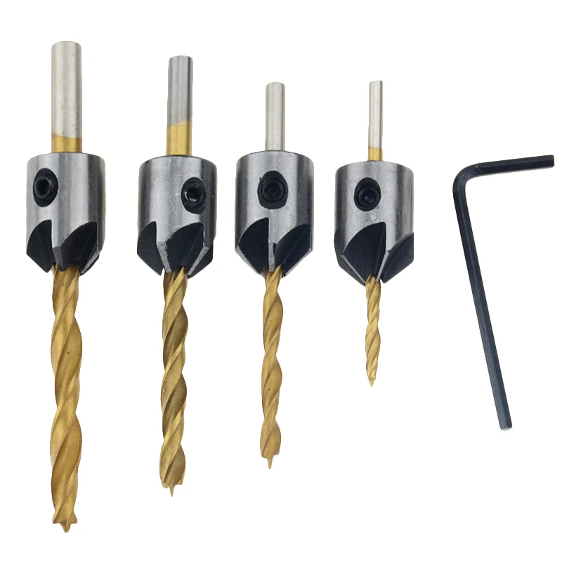 Сверло с зенковкой из стали, 3-6 мм, 4 шт., деревообработка столярных изделий, сверлильный инструмент, Круглый хвостовик с шестигранным ключом