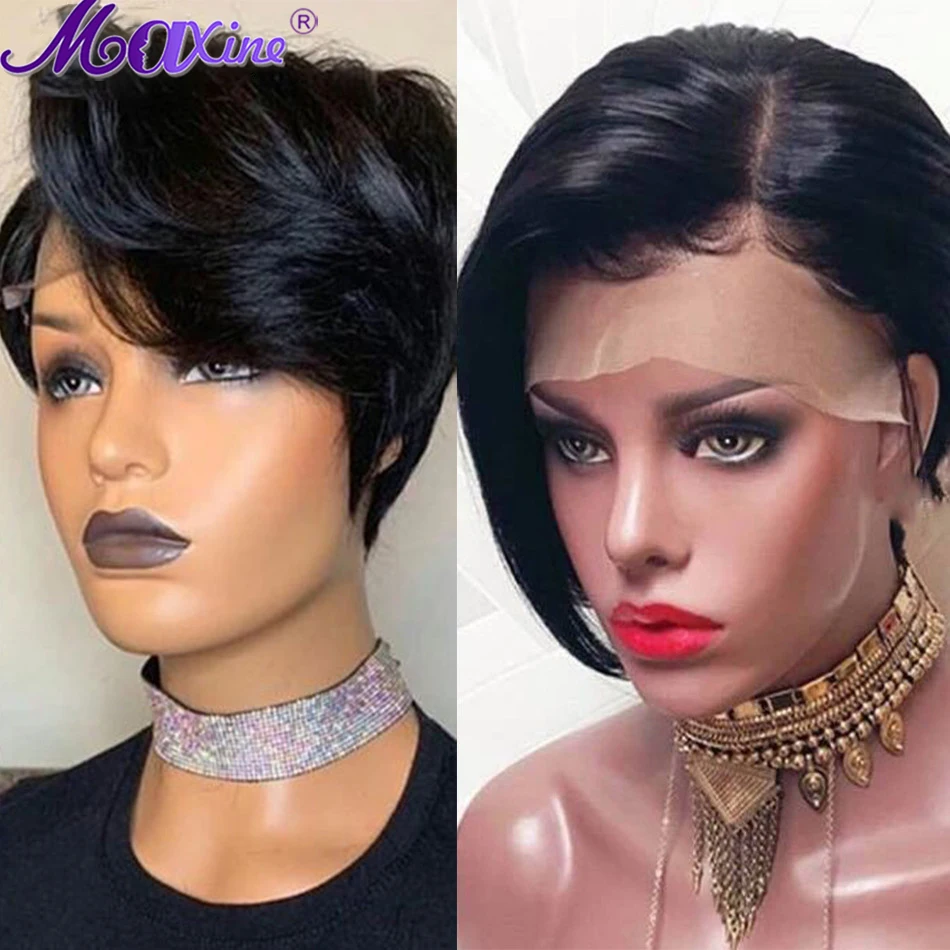 Короткий парик фея, человеческие волосы, макстрин, волосы, вырез фея, вьющийся, Боб, кружевной передний парик, 150% прозрачный, HD кружевной передний парик из человеческих волос