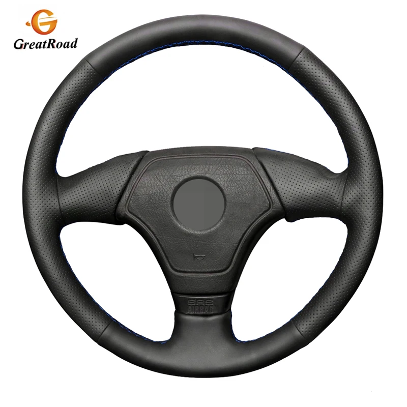 Сшитая вручную черная искусственная кожа Чехол рулевого колеса автомобиля для BMW E36 E46 E39