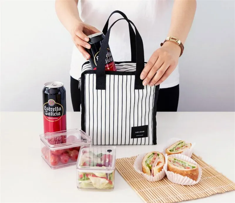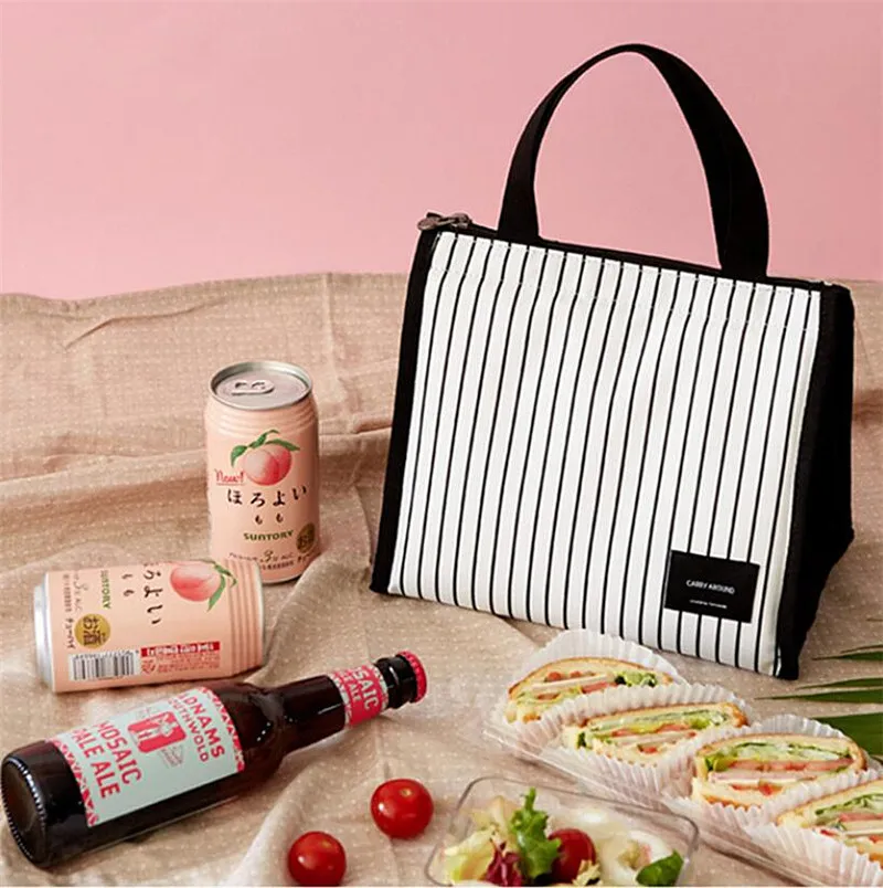 Портативный Ланч-бокс PURDORED в полоску для женщин, сумка-холодильник для еды и пикника, изолированный тоут, контейнер, сумка-Органайзер для бенто, 1 шт.