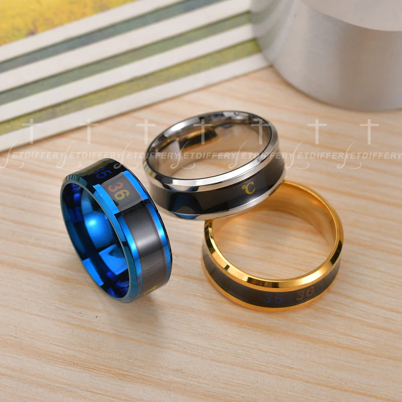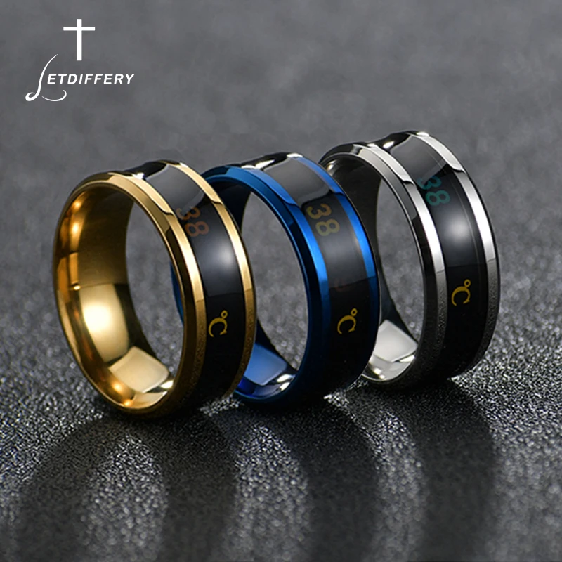 Умное мужское кольцо letdiffy в стиле панк, из нержавеющей стали с чувствительностью к температуре, синее, золотое, черное, мужское, крутое, водонепроницаемые украшения