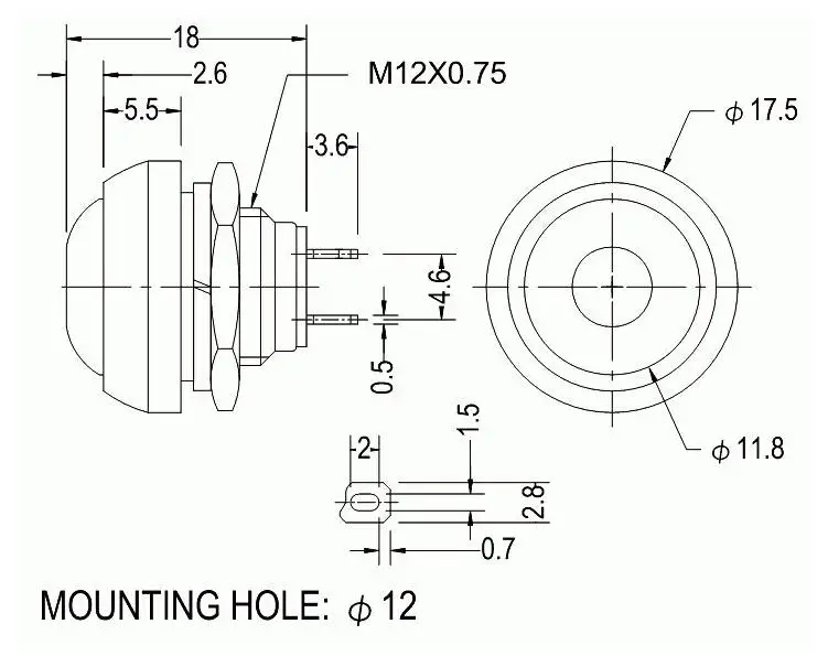 Характеристики: Цвет: белый Количество: 1 шт. Диаметр сигнализации: 29 мм/1,14" Сигнализация высота: 15 мм/0,59" 2 монтажных отверстия расстояние: 40 мм/1,57" 2 провода Длина: 105 мм/4,13" Номинальное напряжение: 12 В Рабочее напряжение: 3-24 В Номинальный ток (макс.): 20 мА Минимальный звуковой выход на 10 см: 95 дБ Резонансная частота: 3100 ± 500 Рабочая температура: -20 ~ + 80 ° НепрерывныйЗвук Монтажные отверстия