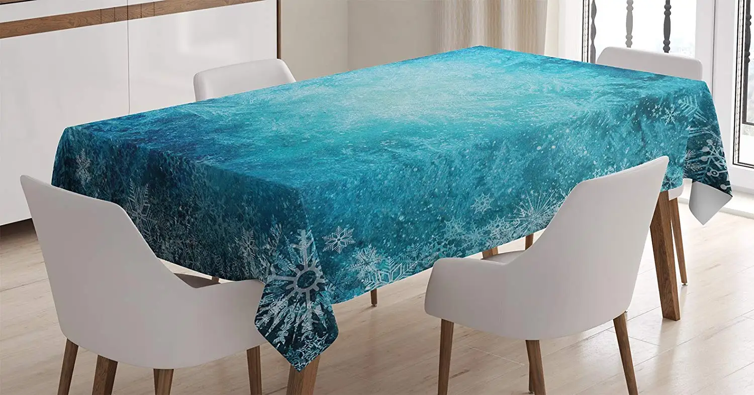 Зимняя скатерть с цифровым изображением зимнего фона с изображением снежинок в мягких цветах тема для столовой и кухни