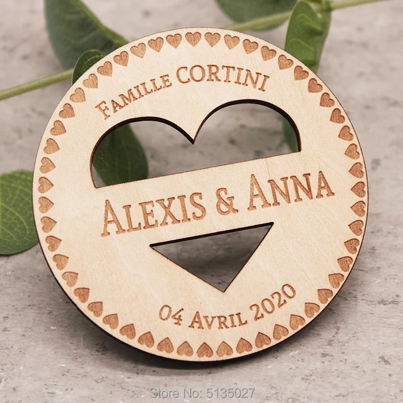 Персонализированные Свадебные магниты, нестандартные свадебные приглашения, деревянные магниты для сохранения даты и сердца