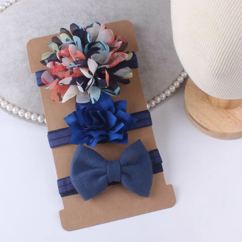 Повязка на голову для девочек, цветная, 8 видов стилей, бант для новорожденных, 3 шт.комплект, лента для волос, бабочка