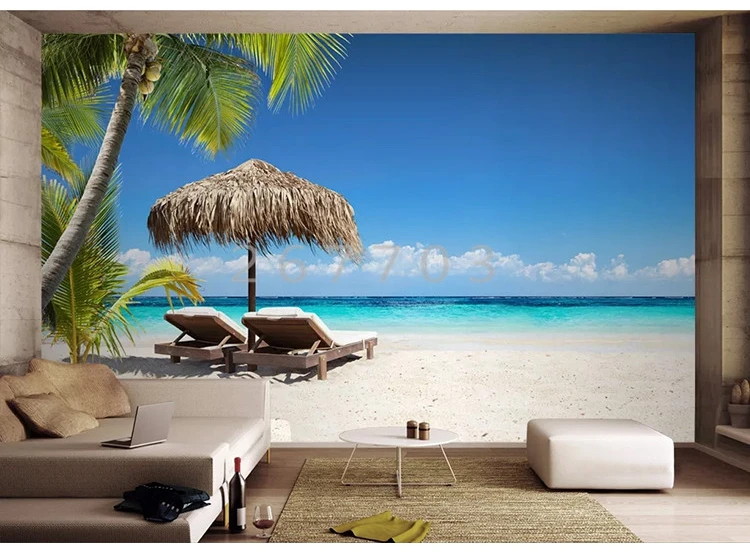 Современный остров пляж кокосовое дерево морской пейзаж Фреска 3D обои Гостиная Спальня телевизор фон украшение стены 3D Наклейка на стену