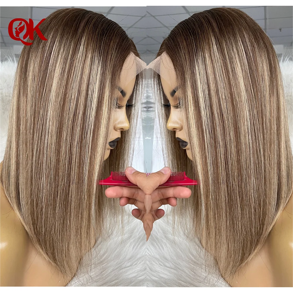 QueenKing волосы 13*6 кружевной передний парик 180% новый цвет Cami боб парик шелковистые прямые свободные части готовые бразильские человеческие волосы Remy