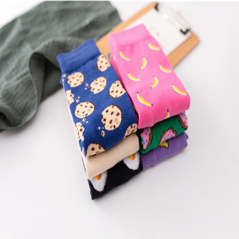 Новинка 2019, женские носки, милые Мультяшные Фрукты Банан и лимон, счастливые носки с пончиками, едой, японские хлопковые носки в стиле Харадзюку, хип-хоп