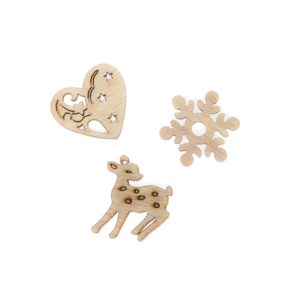 Поделки из натурального дерева, рождественские украшения с отверстием, 50 искусственных украшений, скрапбукинг, вырезанные деревянные чипы, украшение для дома, лидер продаж
