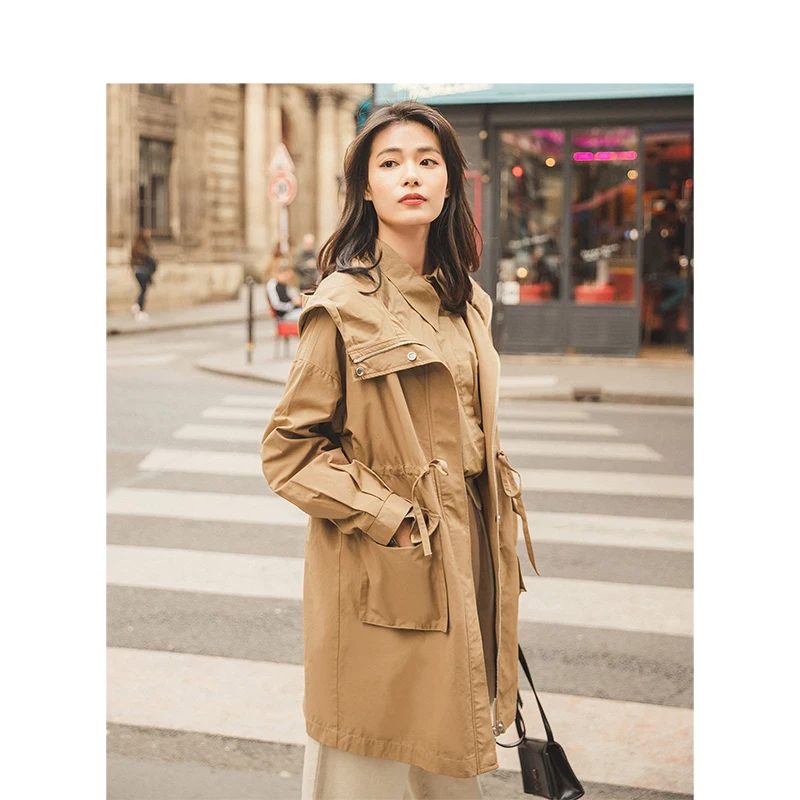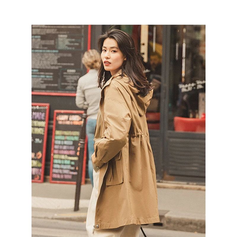 INMANвесенне-осеннее повседневное модное женское пальто с капюшоном цвета хаки