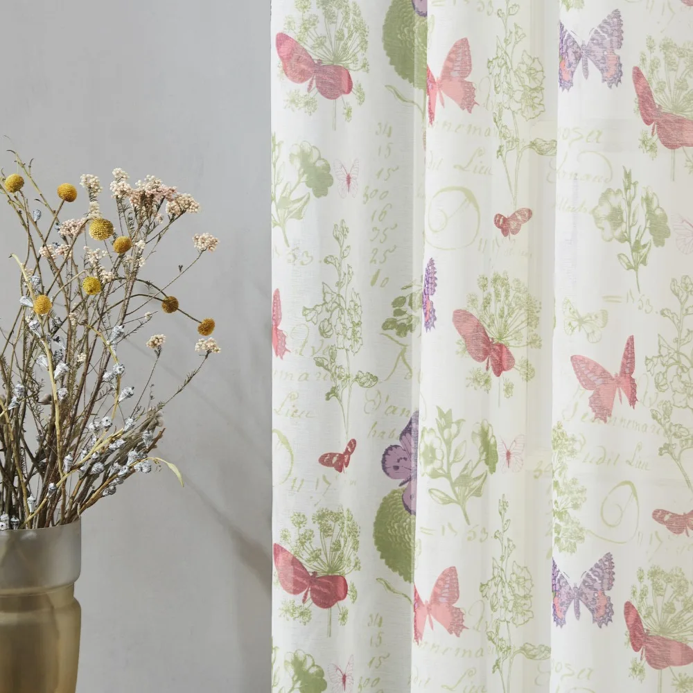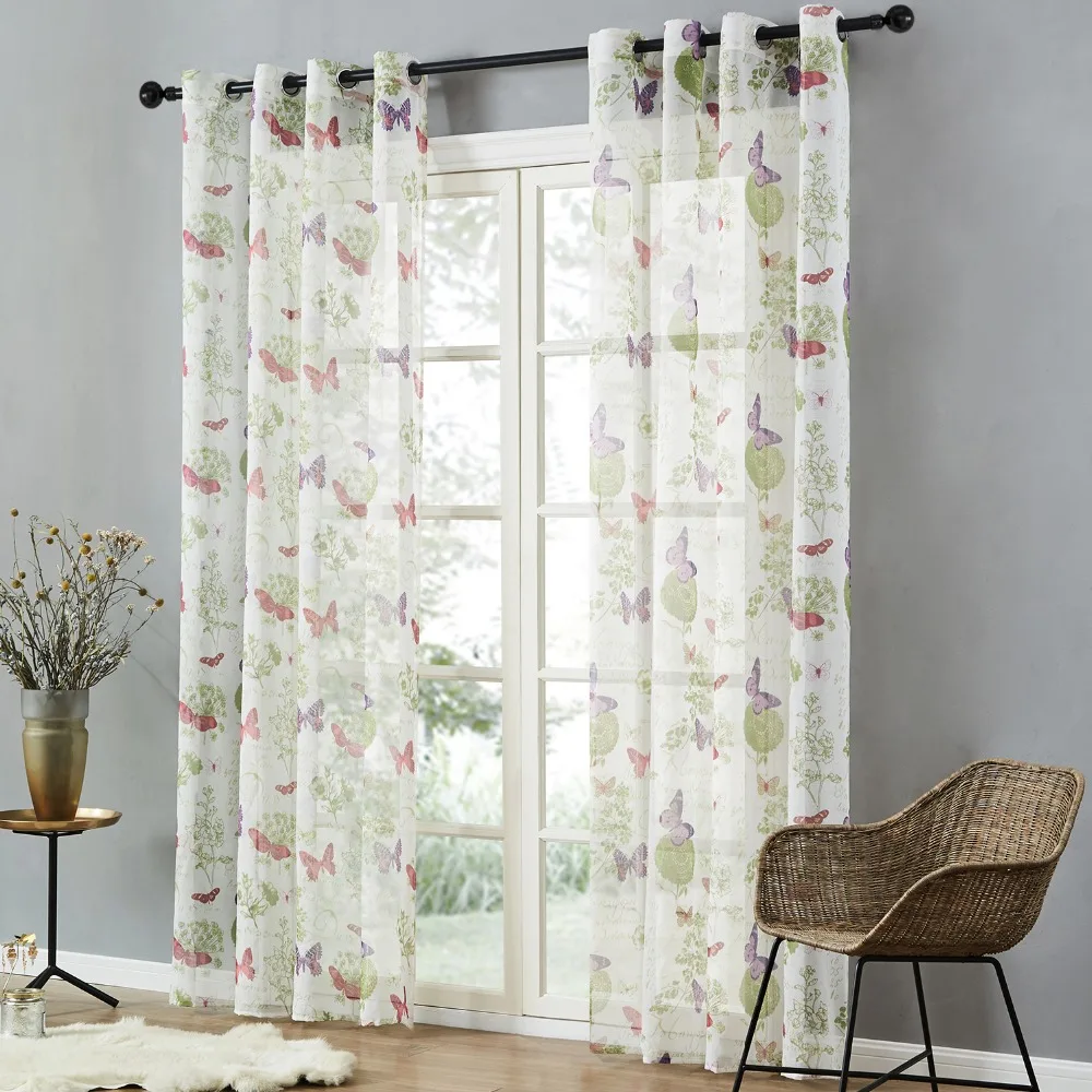Яркие бабочки с принтом на этих белых прозрачных занавесках такие Потрясающие. Идеальные аксессуары для вашего окна. Вы также можете использовать его как кухонную занавеску, занавеску для гостиной/спальни или разделитель комнаты.