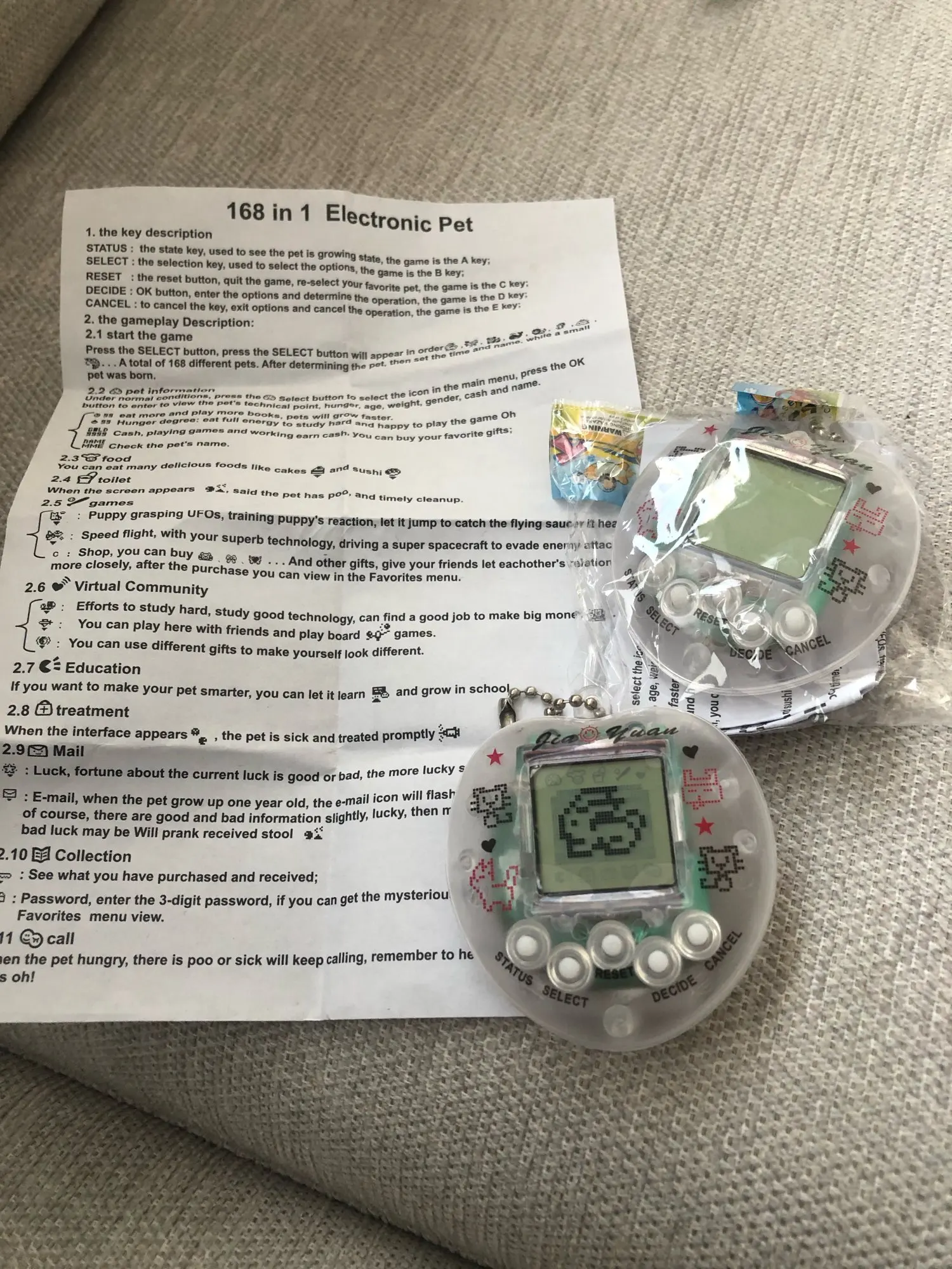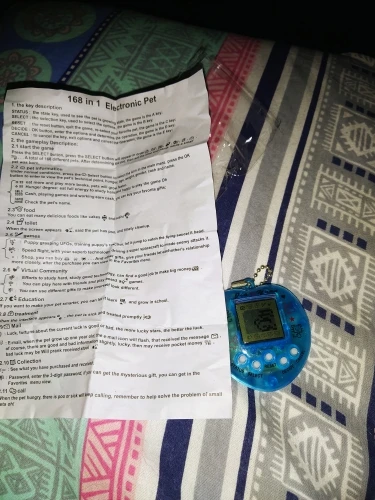 Все отлично. Ностальгия, заказывала дочери, но пока сама играюсь))). Хотелось конечно цвет кроме голубого, а прислали именно голубой. Раньше конечно были интересней тамагочи. Сейчас питомец уже взрослый, его не надо растить.