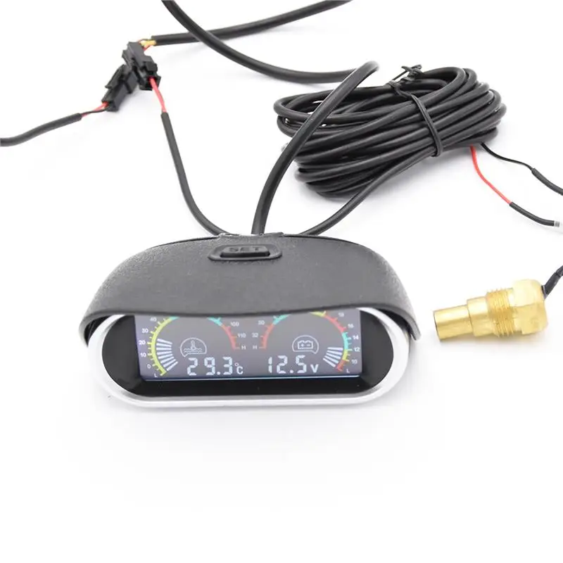 Автомобильный горизонтальный измеритель температуры воды 2 в 1, 12 В24 В, с ЖК-дисплеем, вольтметр, измерители напряжения с датчиком температуры