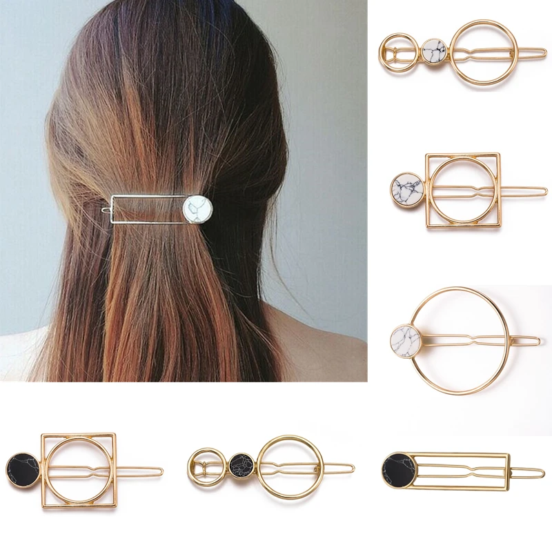 Женские заколки для волос в Корейском стиле, геометрические металлические заколки из натурального камня, заколки для волос для девочек, аксессуары для волос