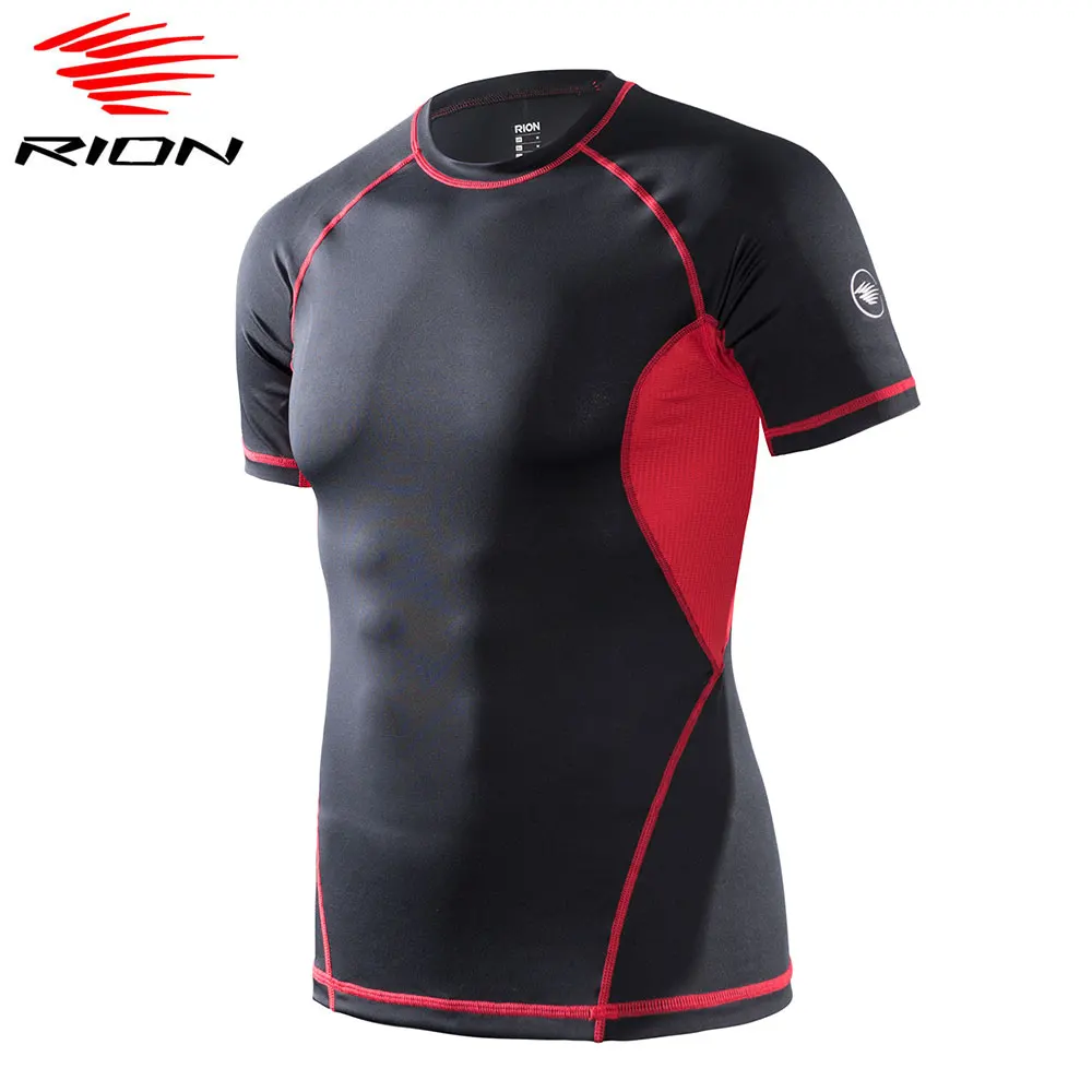 Мужские компрессионная футболка RION, спортивные футболки для бега, быстросохнущие футболки для тренажерного зала, футболки для фитнеса, атлетических тренировок, Топ