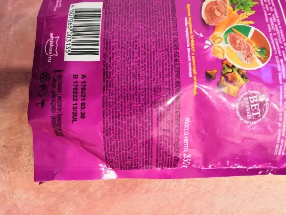 Заказывала с купоном продавца на 100₽ за подписку. Вискас стоил 110₽, в итоге вышел за 10₽. Продавец все выслал, доставлено было очень быстро в пункт выдачи Пятёрочка. Сроки годности в норме, у меня до 17.02.2022г. Единственное, что смутило при получении - это то, что заявлено, что корм в коробке, а пришёл в пакете, но это вообще ерунда, тем более за такую цену) Вес так же, как и заявлено - 350гр., см. 3 фото. Спасибо продавцу! Рекомендую магазин!