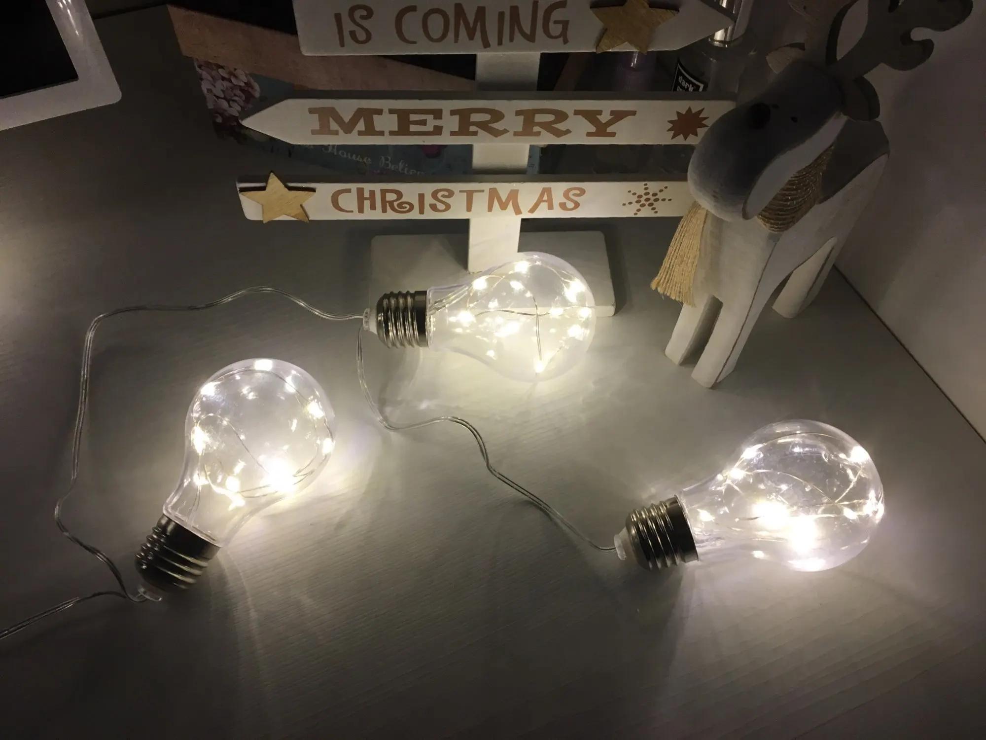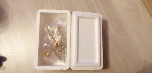 Ещё не проверяла как светятся, но выглядят очень красиво. Небольшая царапина на отсеке для батареек. Лампочки либо из очень плотного пластика, либо стекла, т.к. при постукивании материал звенит как настоящее стекло)