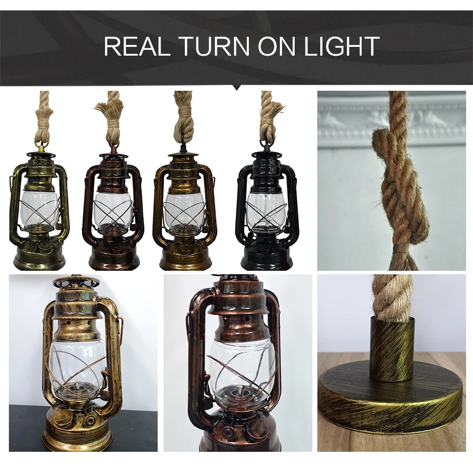 Винтажный подвесной светильник в стиле индастриал, лампа E27 с пенькой фонарь на веревке в стиле ретро, декоративное освещение в стиле лофт для дома, комнатное освещение для бара