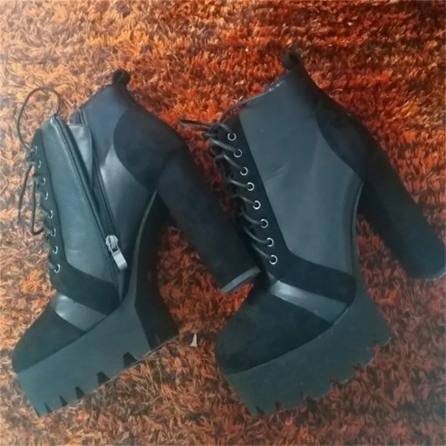 Женские флоковые ботильоны Onlymaker, на платформе 13-14 см, со шнуровкой, на толстом высоком каблуке, на молнии
