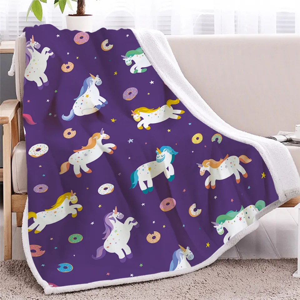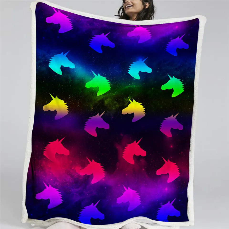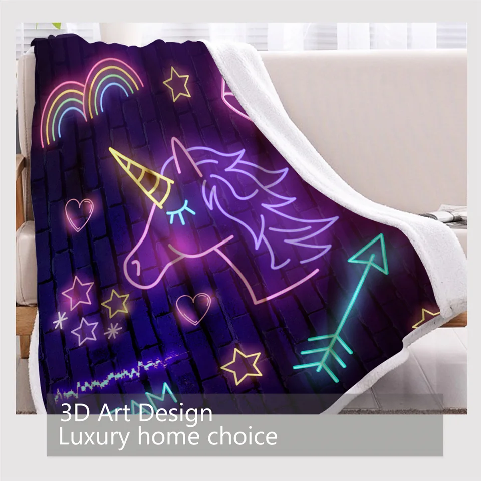 Покрывало для кровати, фиолетовое, с единорогом, светящееся пушистое, разноцветное плюшевое покрывало, постельное белье с радужным неоновым светом