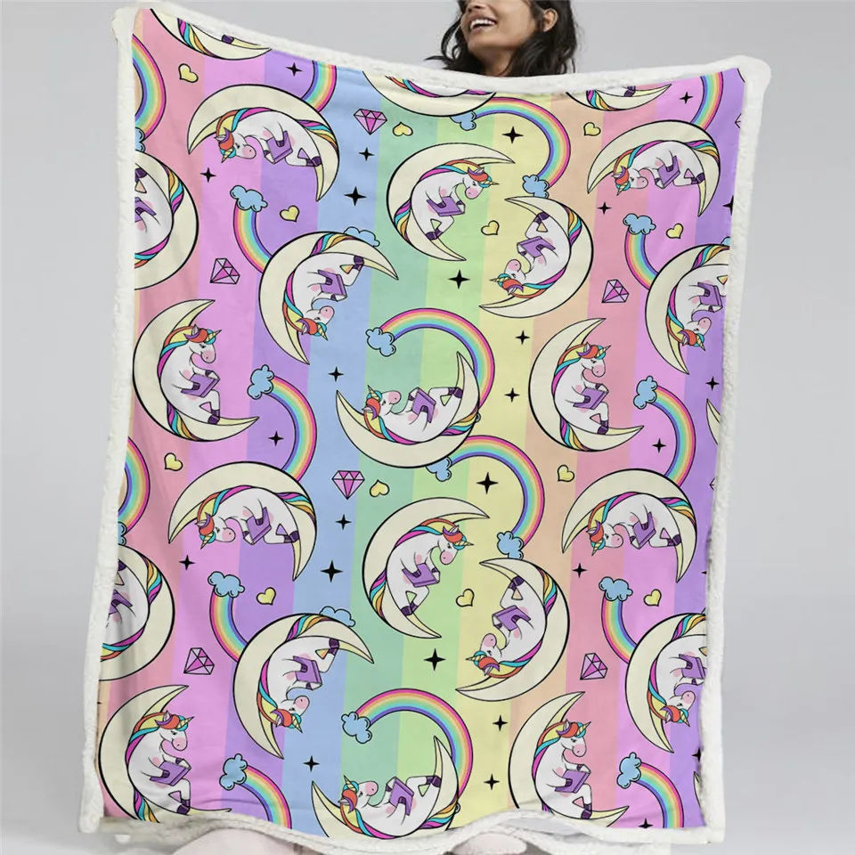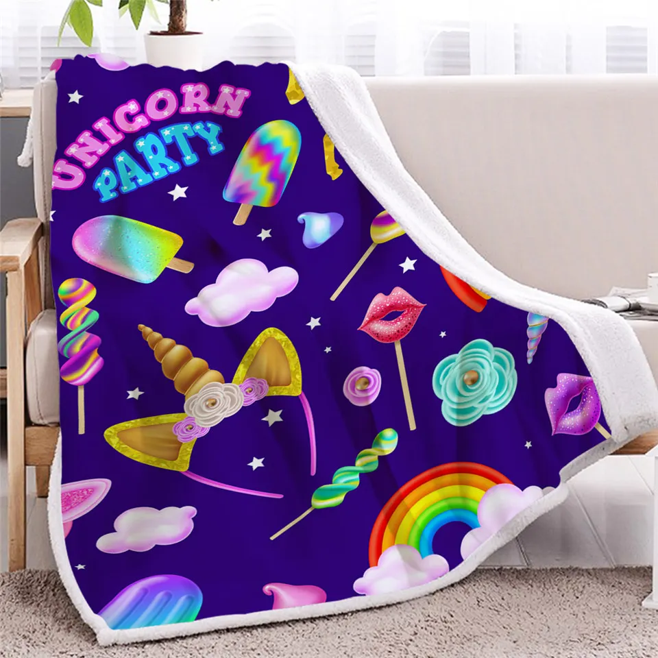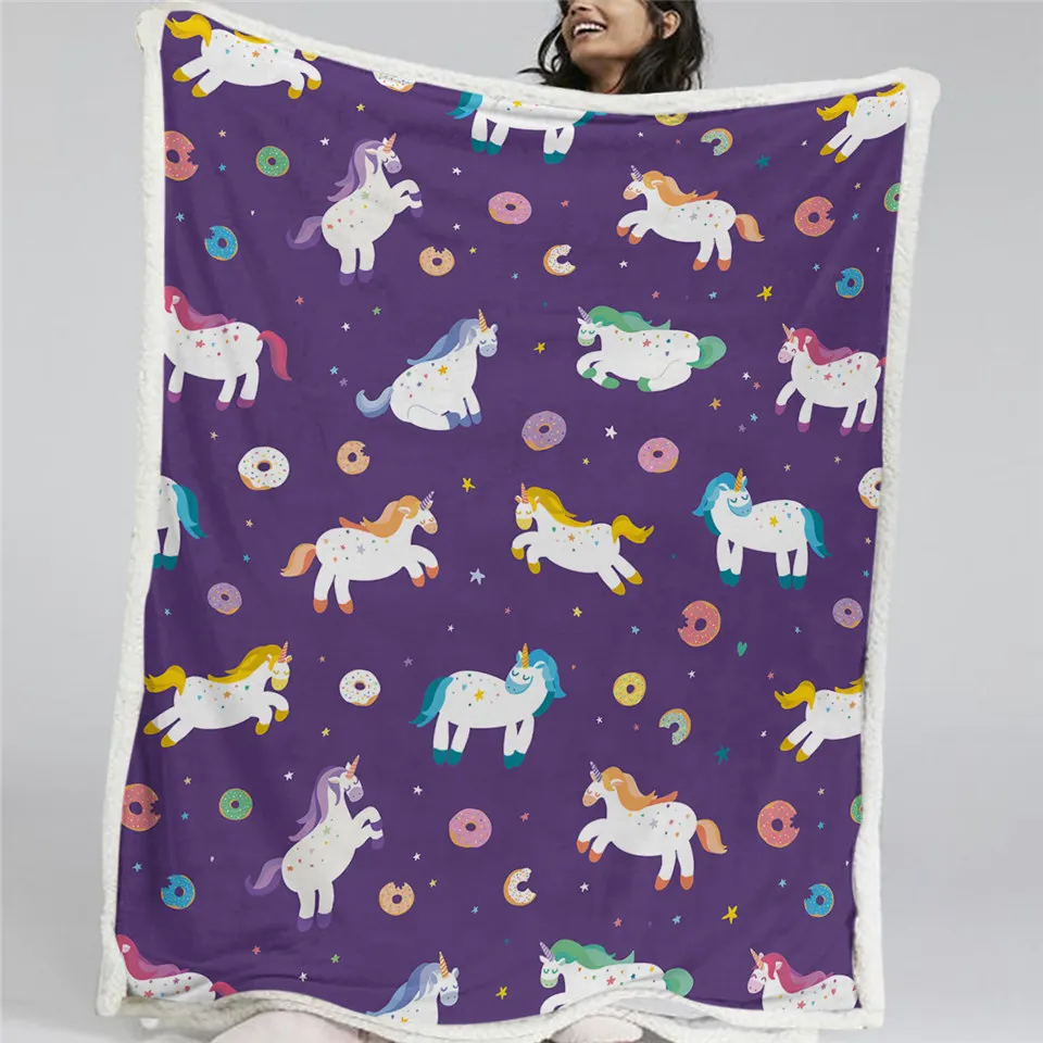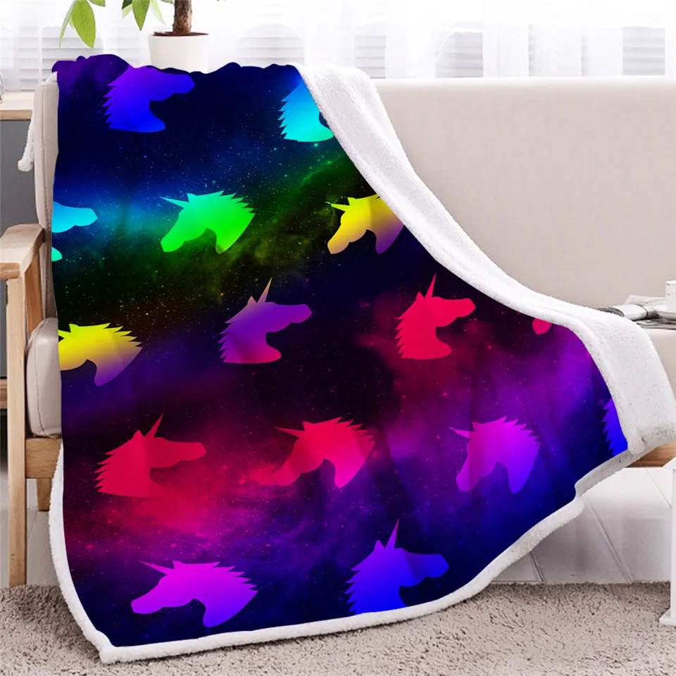 Покрывало для кровати, фиолетовое, с единорогом, светящееся пушистое, разноцветное плюшевое покрывало, постельное белье с радужным неоновым светом