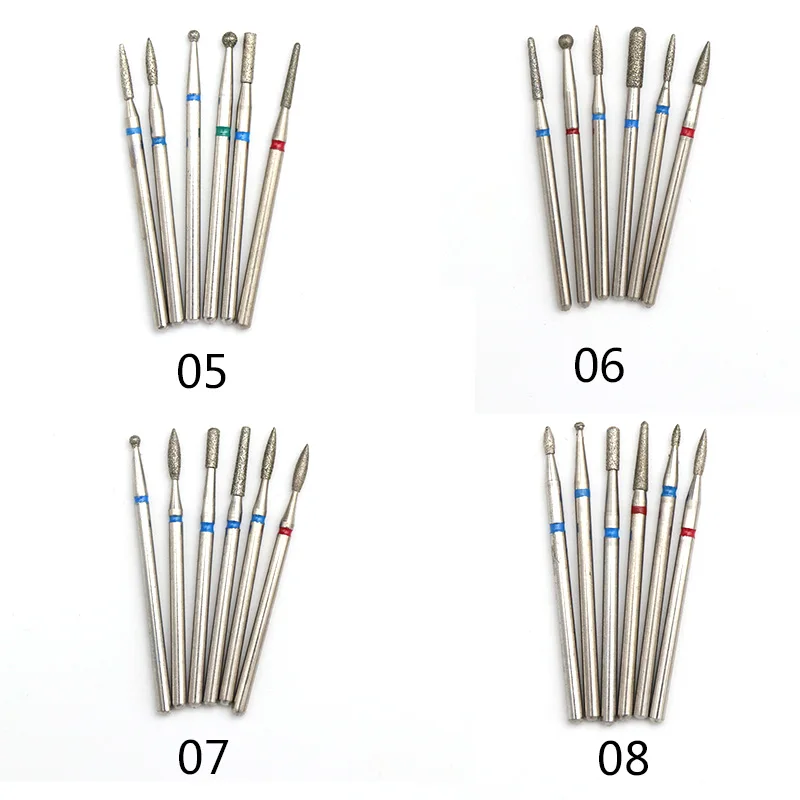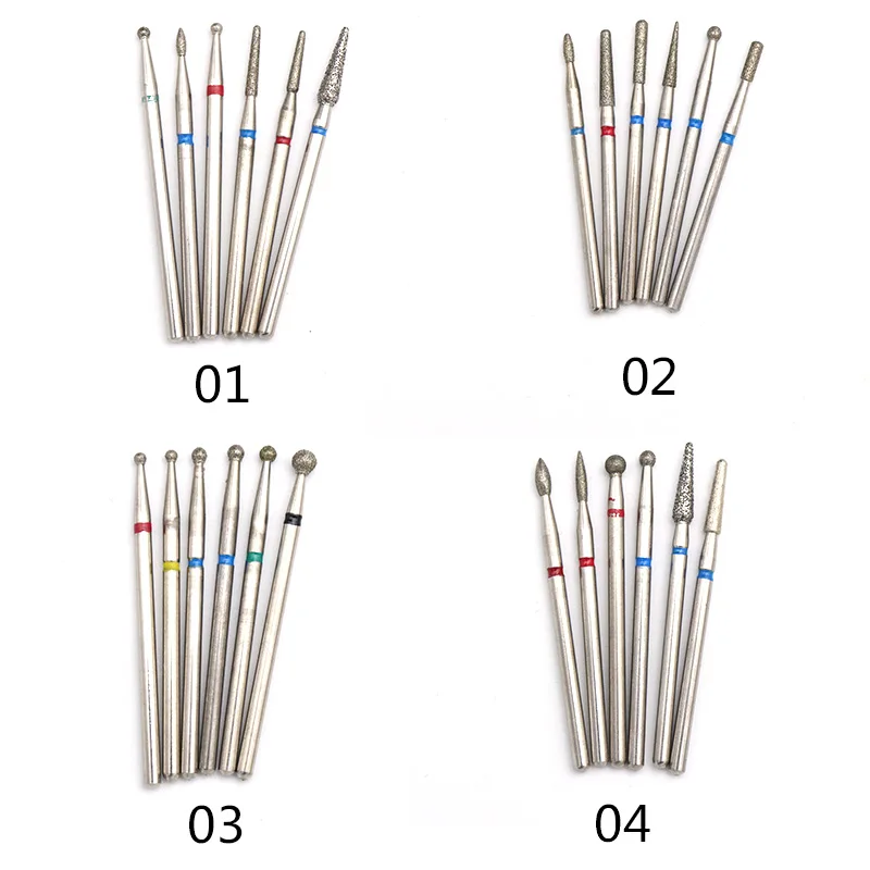 6 шт набор мульти-типы алмазная шлифовальная головка для ногтей маникюр резак Педикюр машина шлифовальный сверло электрических роторных инструментах