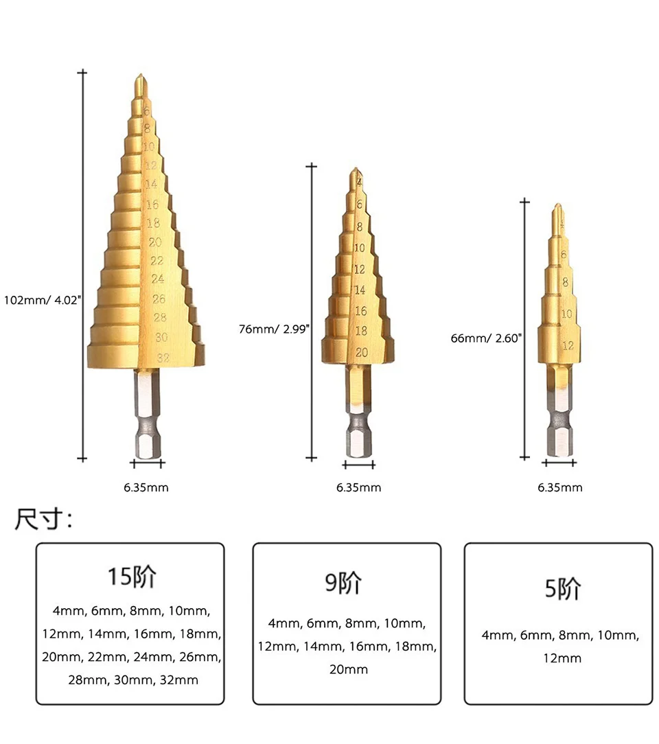3 шт. набор быстрорежущих стальных ступенчатых Сверл С Титановой пластиной, набор сверл для сверления отверстий из листового металла 4-12 мм 4-20 мм 4-32 мм 3-12 мм