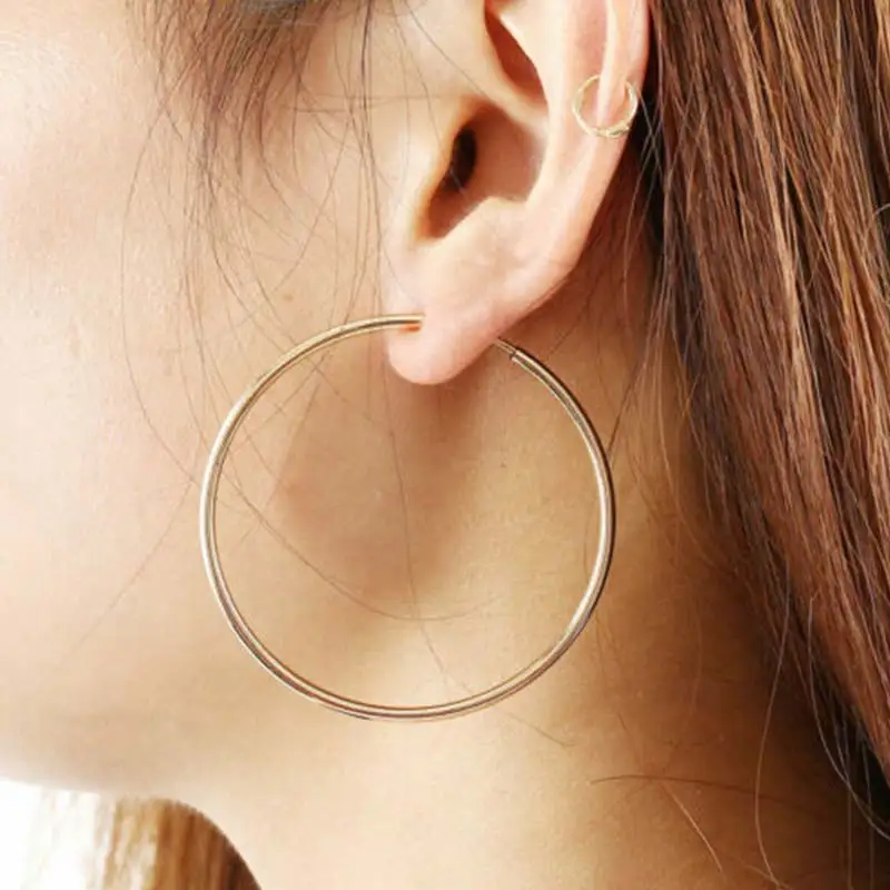 Материал: сплавВарианты размеров: 40 мм, 50 мм, 60 ммЦвет: как показано на картинкеПружинный зажим, подходит для ушей без пирсингаКомплектация: 1 пара серег-клипсовПримечание:Из-за ручных измерений возможна погрешность в 2-3%.Обратите внимание что небольшая разница в цвете считается приемлемой. Это может быть связано с положением источника света и с настройками экрана.