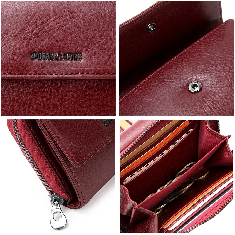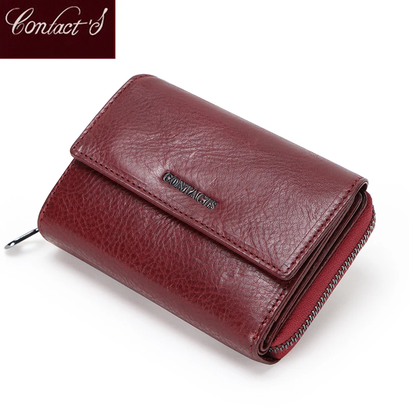 Contact'S Модные женские кошельки из 100% натуральной кожи тройного сложения, дизайнерская сумка для денег, маленький кошелек на молнии для монет для девочек, сумки с держателем для карт