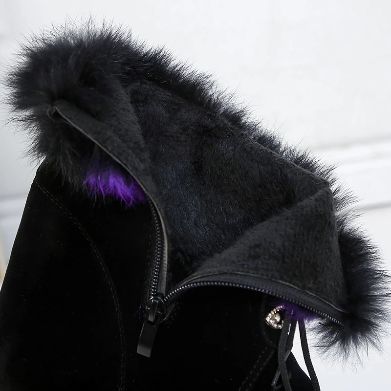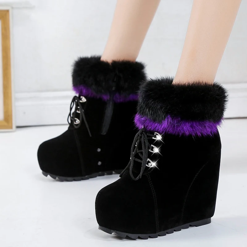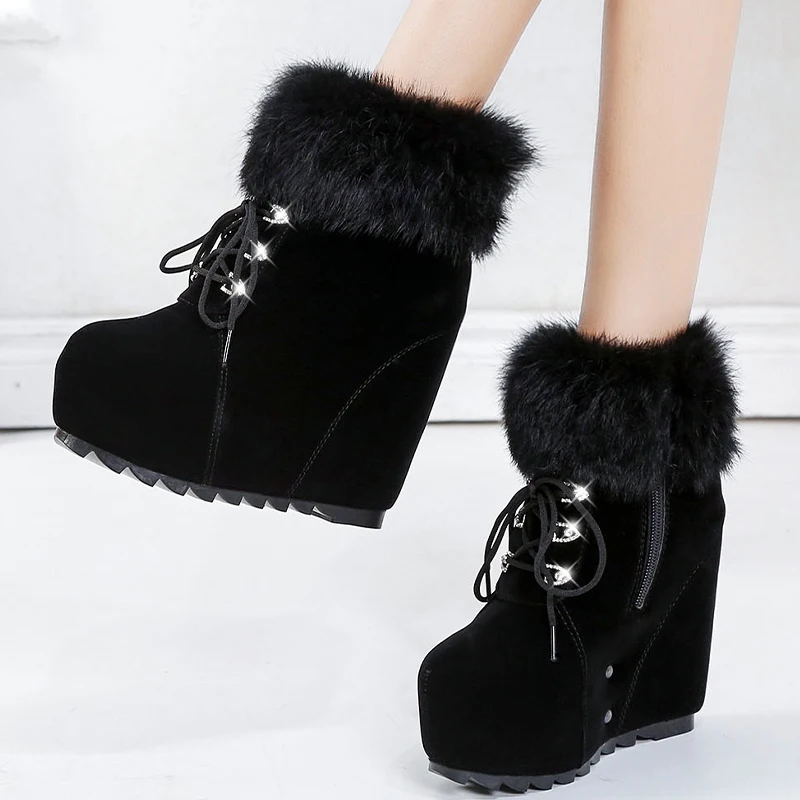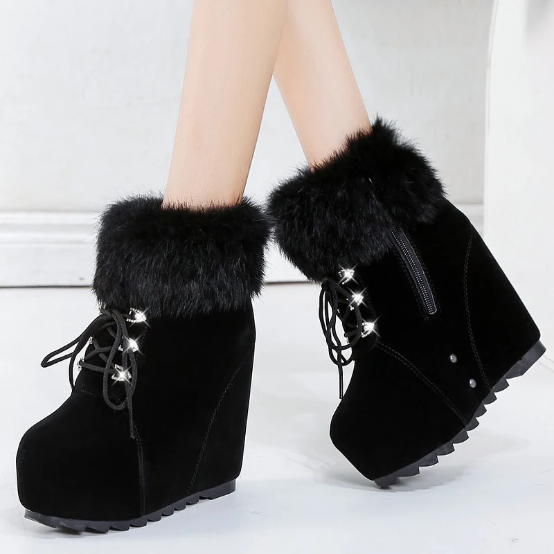 Rimocyботильоны на меху со шнуровкой, украшенные кристаллами женские зимние ботинки на очень высоком каблуке и танкетке теплая женская обувь на плюшевой подкладке