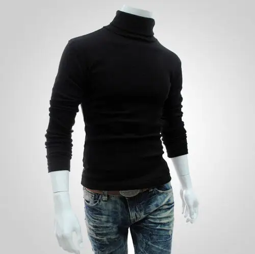 Мужской пуловер с высоким воротом, повседневный облегающий джемпер ...