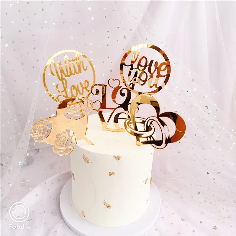 2020 новый день Святого Валентина акриловый торт Топпер золотой роз...