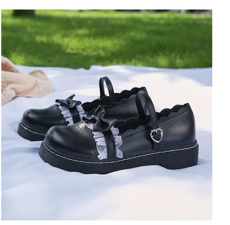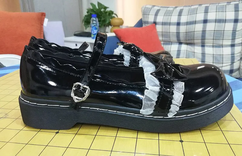 Женские туфли в стиле лолита, черные туфли в стиле Харадзюку на пла...