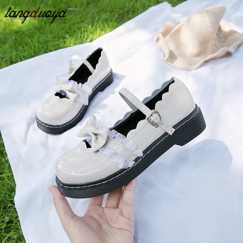 Туфли в готическом Стиле Лолита на платформе и низком каблуке, женские милые кружевные туфли, обувь для школьной униформы г., кавайные женские туфли с бабочками